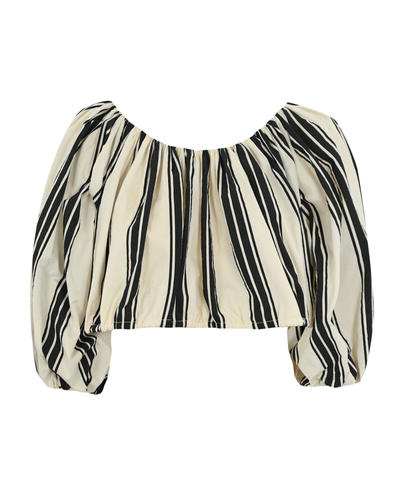 women's striped top: cotton blend short balloon sleeves elastic sleeve bottoms wide crew neck adjustable drawstring bottom regular fit composition: 81% cotton, 19% polyamide