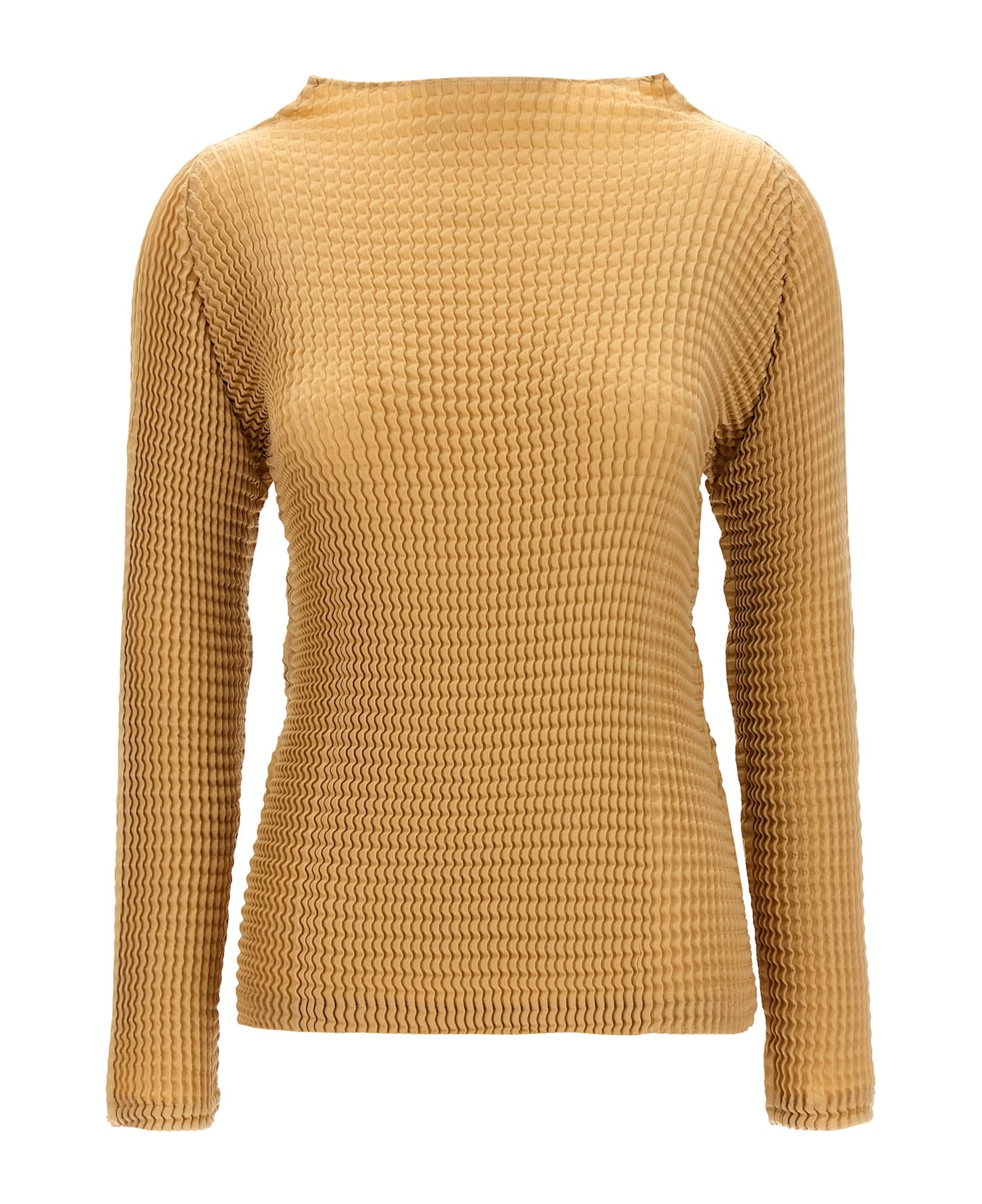'Suede Like Pleats' pleated blouse with crew neck and long sleeves. SUSTAINABLE: product made from recycled polyester.