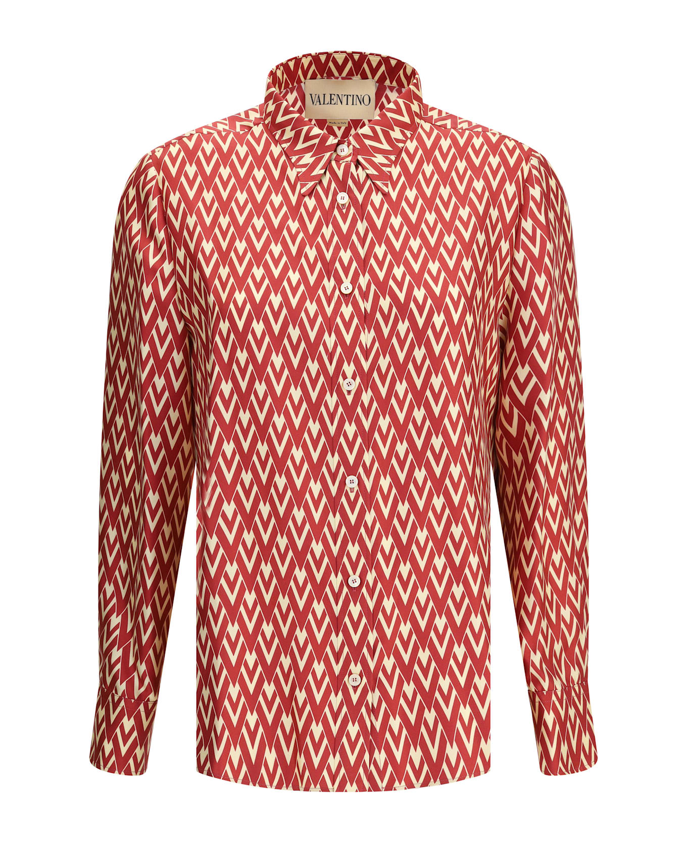 The toute la v pattern shirt by valentino is an elegant piece with a graphic character. featuring a classic collar and front button closure, it stands out for its all-over v pattern that recalls the iconic identity of the maison with a bold and contemporary style. Composition: 100% % Silk