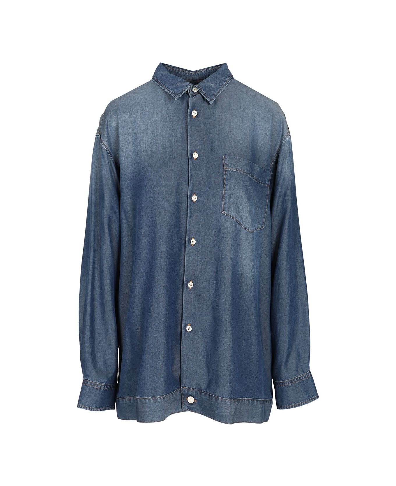 Super-lightweight "Trompe-l'oeil" denim shirt by Magliano. Oversized fit.