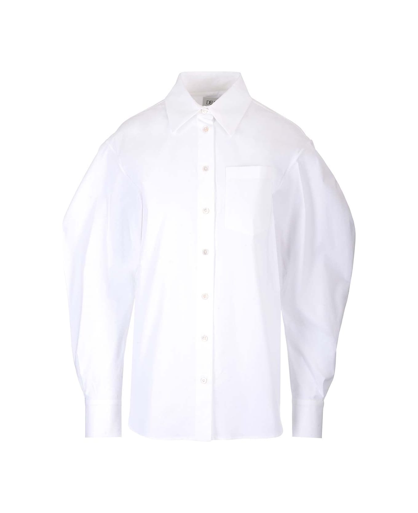 Poplin cotton shirt from Del Core, with classic collar, chest pocket, visible buttons, voluminous sleeves with curved profile. Composition: 97%CO 3%EA