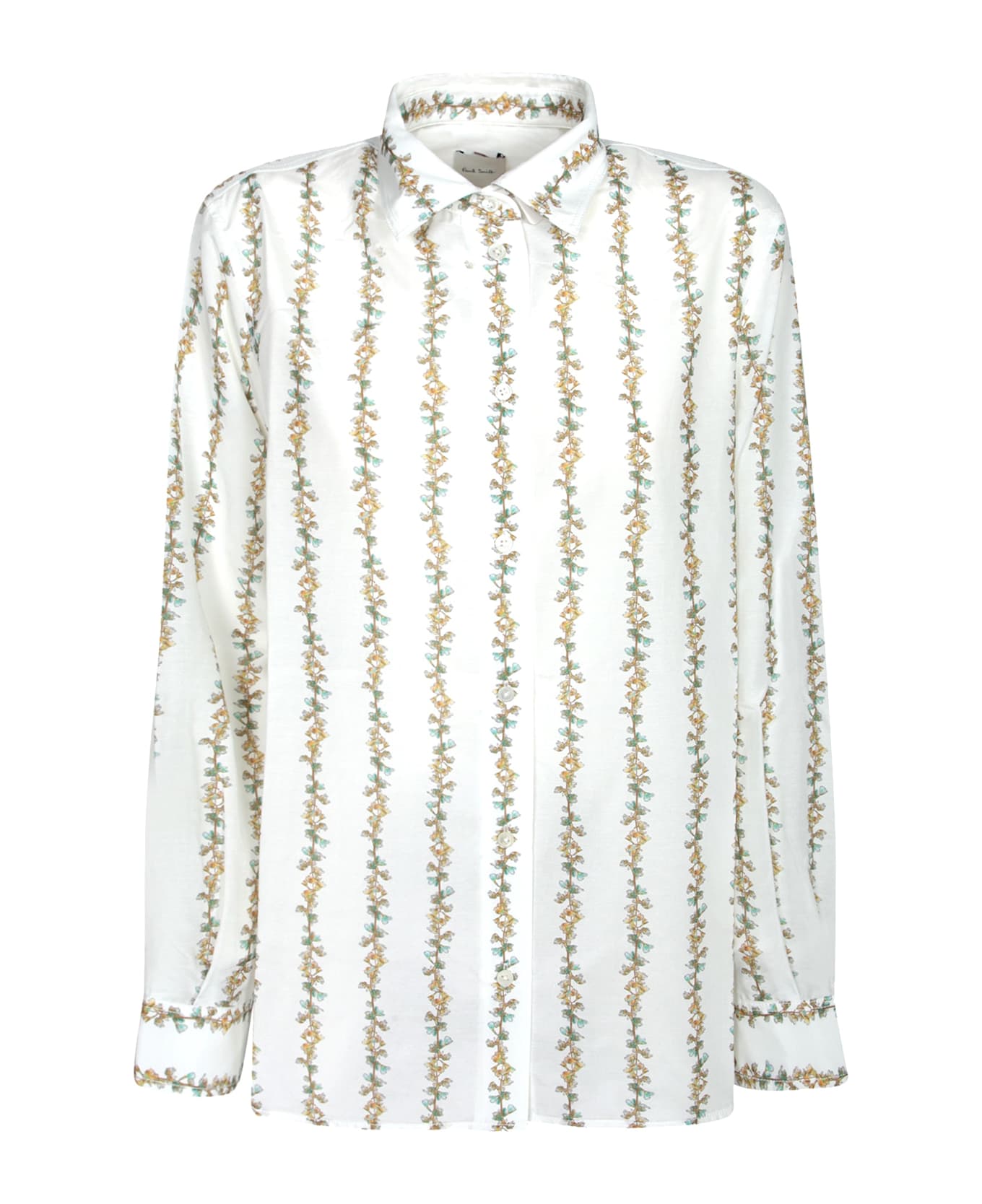 Refined Paul Smith shirt featuring an exclusive vertical floral motif on a white fabric. A perfect blend of classic style and modern touch.
