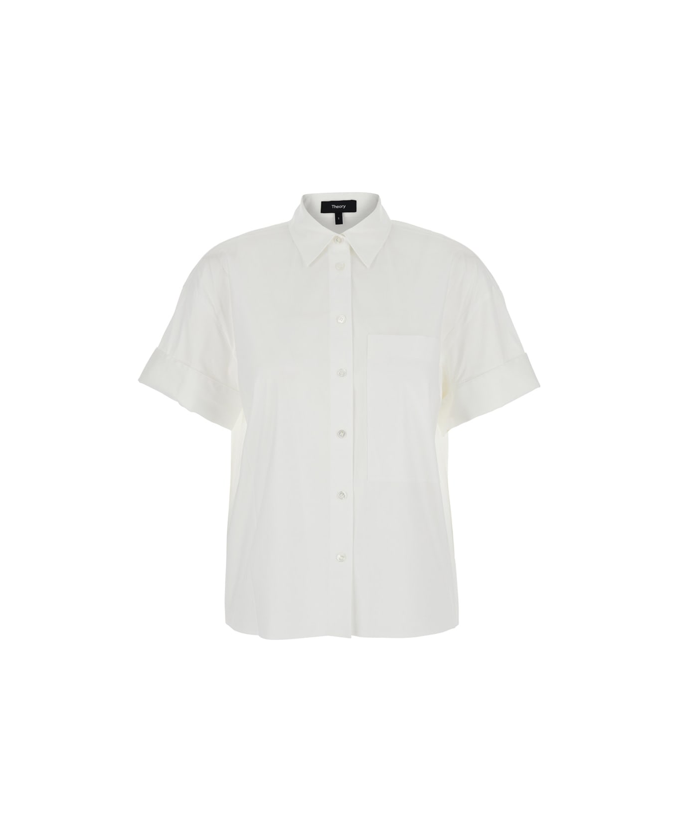 Shirt White Classic collar Short sleeves Front button closure One front patch pocket Buttoned cuffs Straight hem Cotton blend Regular fit