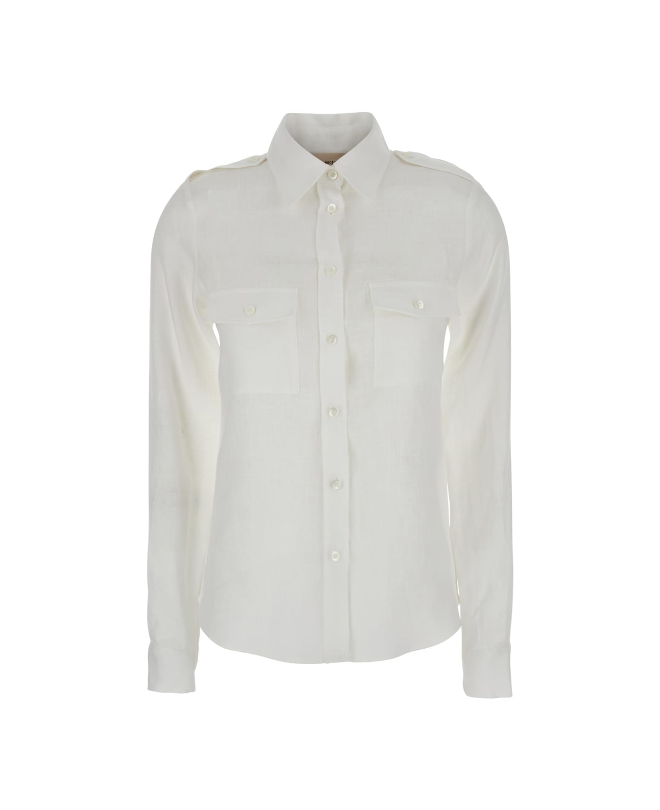 White Shirt With Pointed Collar And Patch Pockets On The Chest In Linen Woman