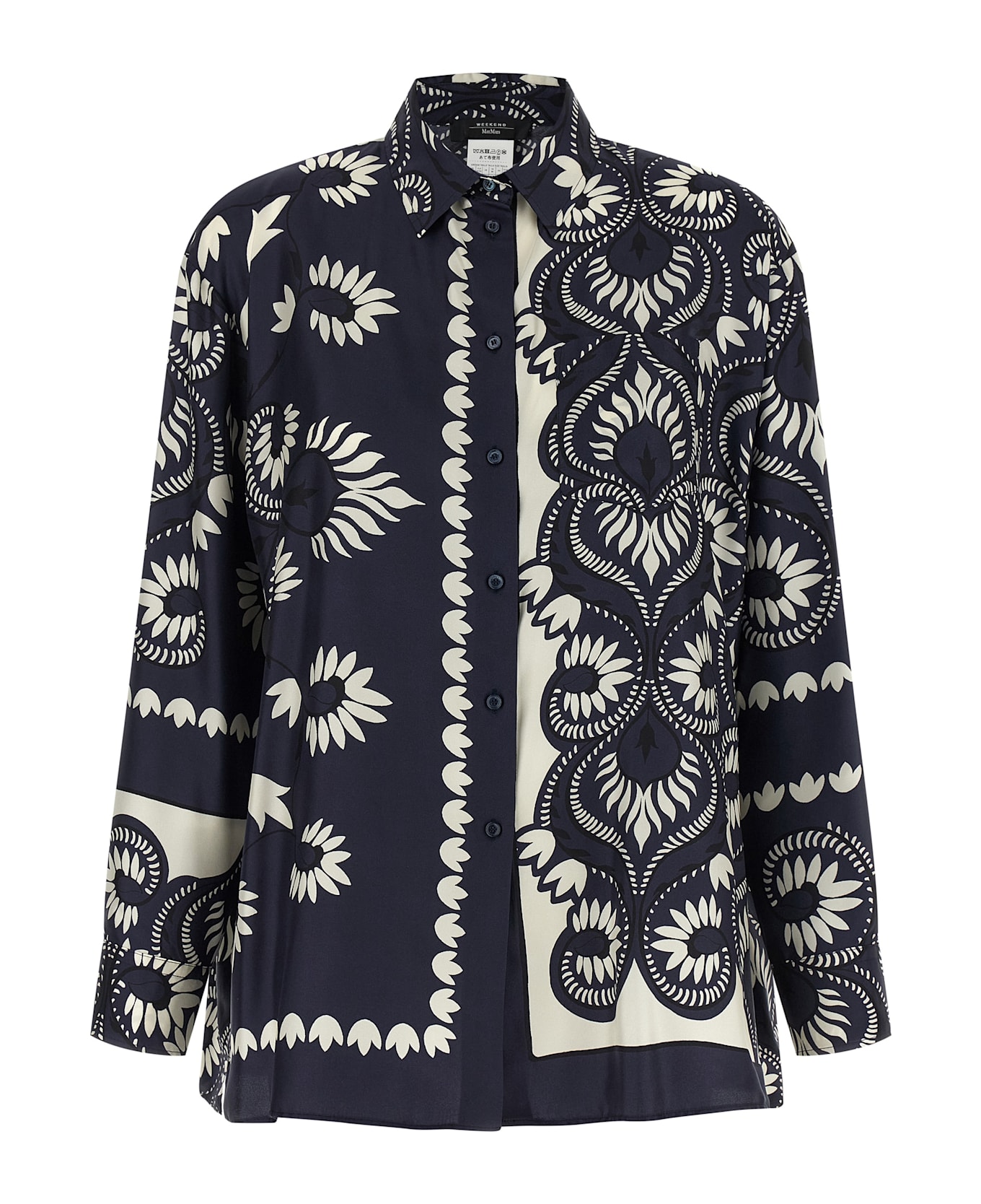 'WkdLastra' pure silk twill shirt with patchwork effect print, front button closure, breast pocket, long sleeves with cuffs and dropped shoulders, side slits. Rounded hem. Composition: 100% silk