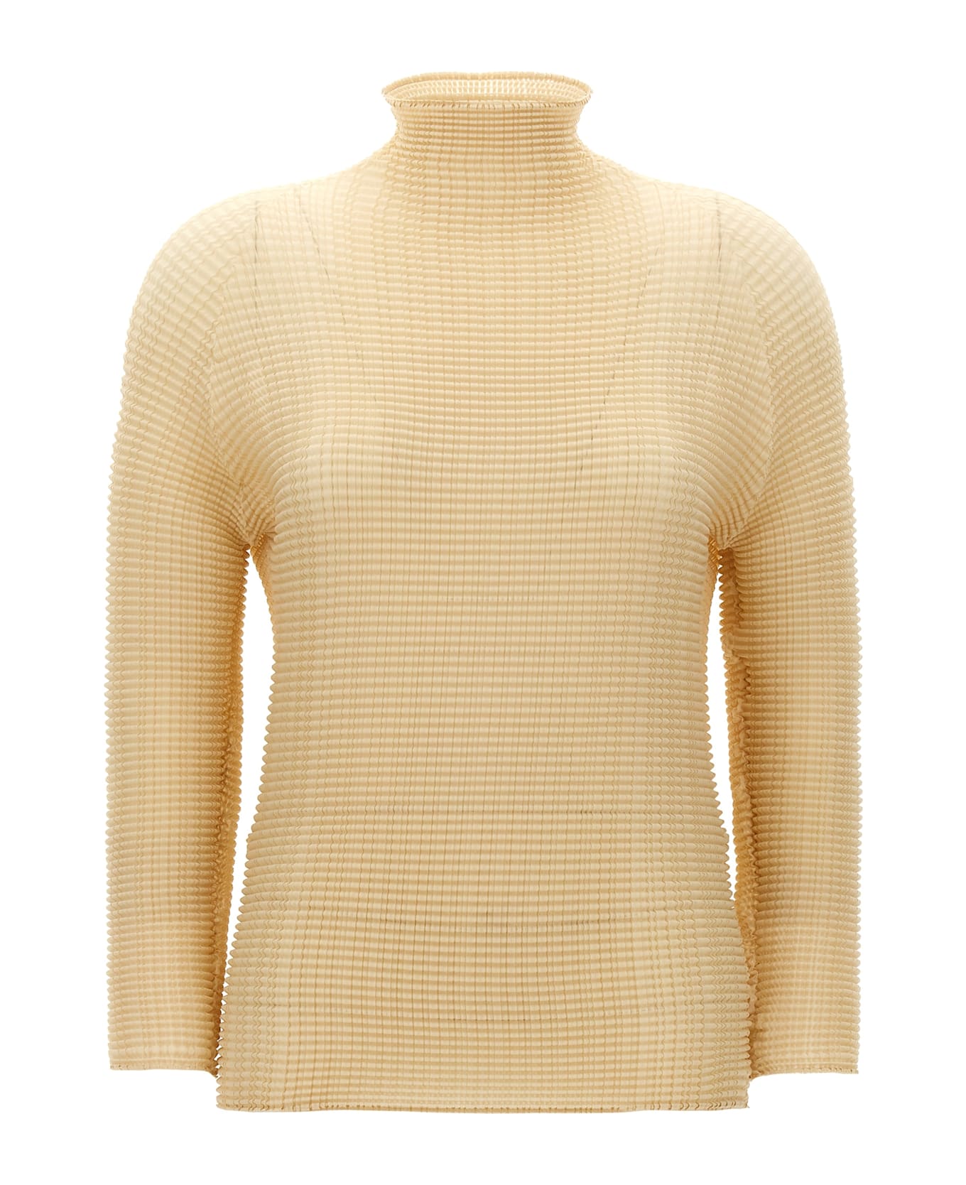 'Wooly Pleats-56' pleated fabric blouse with high neck and long sleeves. SUSTAINABLE: product made from recycled polyester.