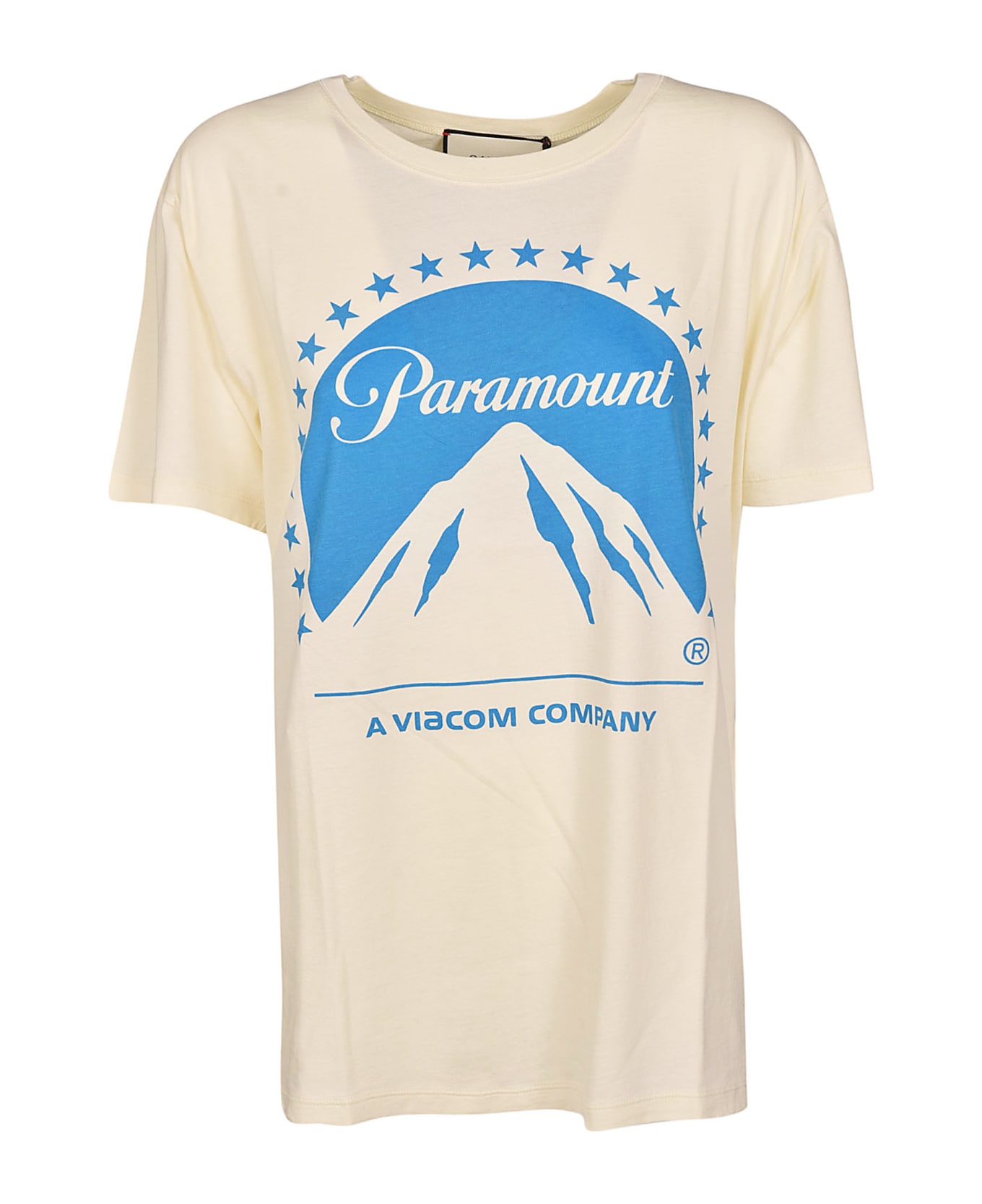 Paramount T-Shirt from Gucci: Beige/Cobalt Blue Paramount T-Shirt with round neck, print to the front, logo print to the back, short sleeves and straight hem. Composition: 100% Cotton