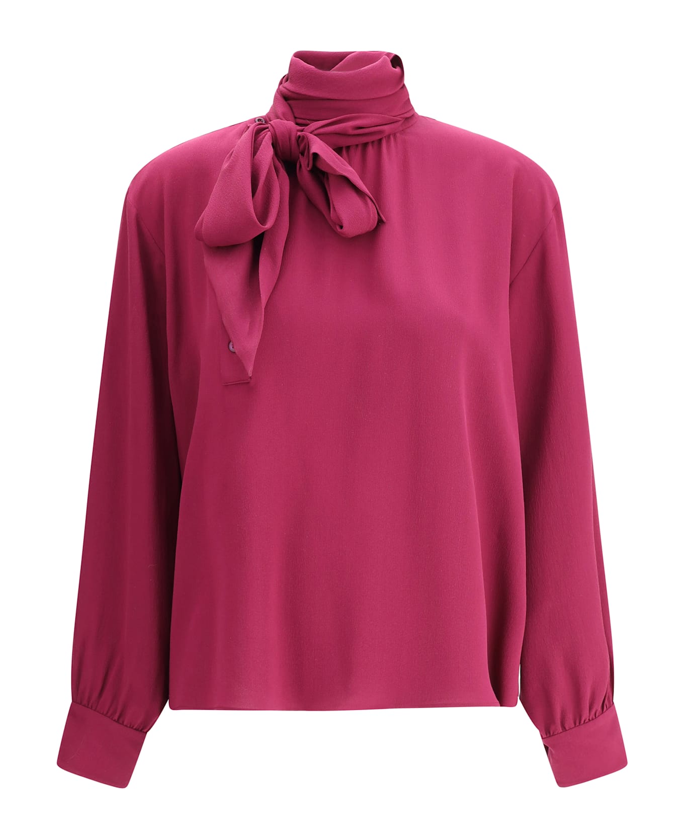 Silk blouse by prada has an elegant and feminine design. it features long sleeves, a self-tie sash collar and an off-center button closure at the midsection. the cuffs are adjustable with buttons, while the loose fit ensures comfort and sophistication. an ideal garment for sophisticated looks, both formal and casual chic. Composition: 100% % Silk
