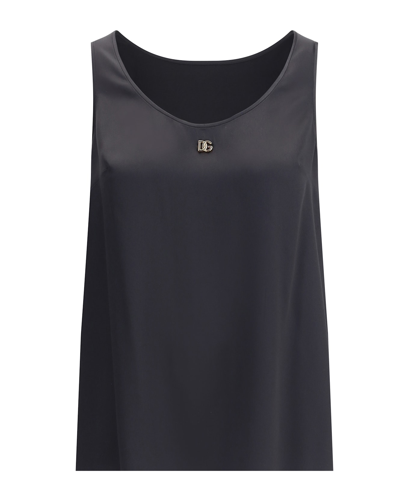 Dolce&gabbana's silk sleeveless top is an elegant and refined garment, featuring an applied logo plaque on the front that emphasizes its style identity. the silk gives a soft and luminous texture, perfect for sophisticated and feminine looks. Composition: 100% % Silk