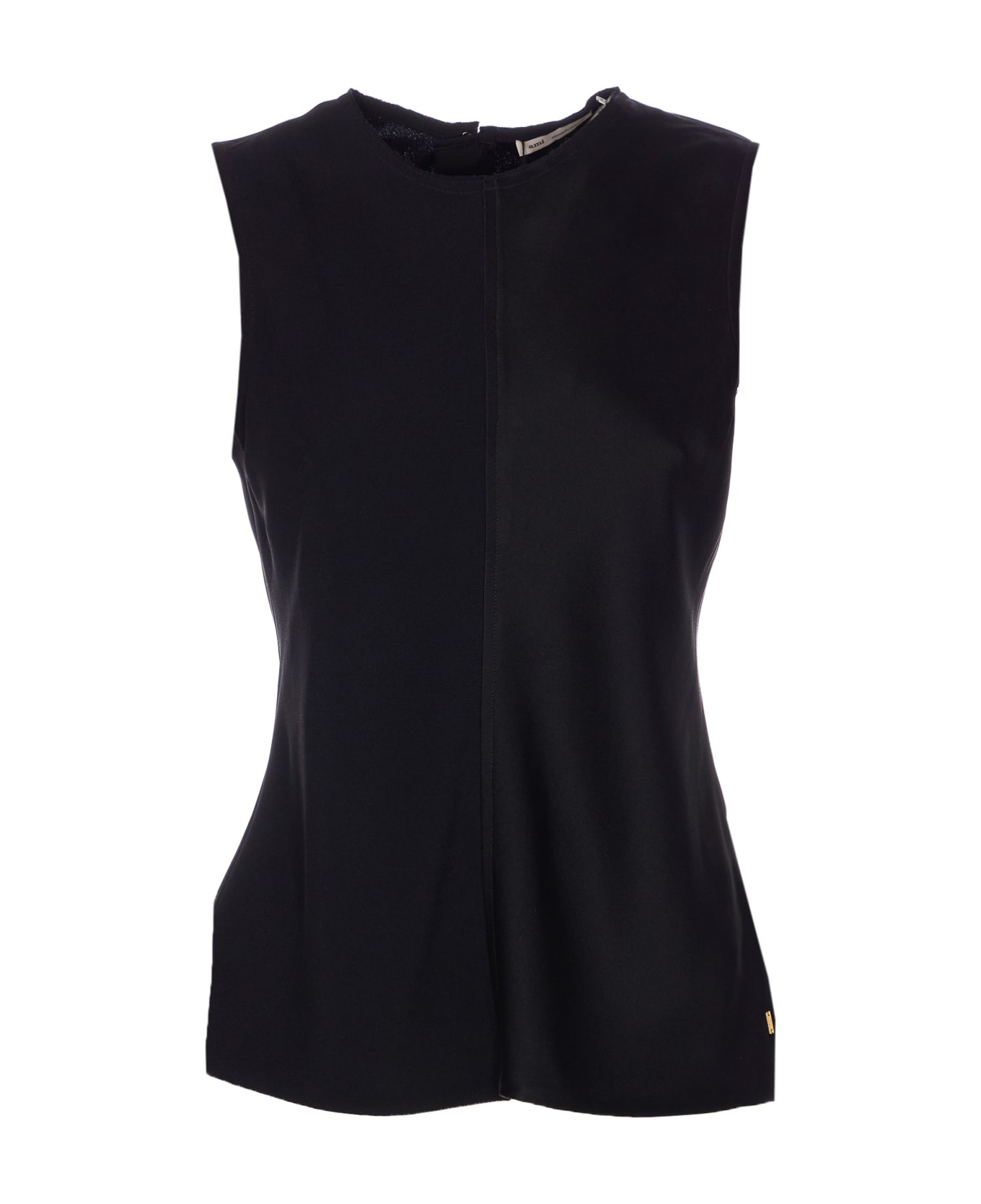 Ami - Alexandre Mattiussi black sleeveless top, zip closure on the back, mini plaque logo on the back Composition: 71% Acetate, 29% Viscose