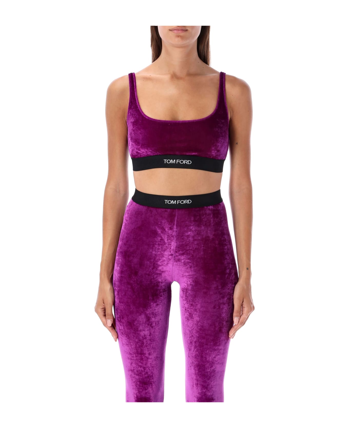 Stretch Velvet Bralette By Tom Ford. Featuring: Scoop Neckline Elasticated Band With Tom Ford Jacquard Logo Model Is 1,72 M Tall And He Is Wearing Size S