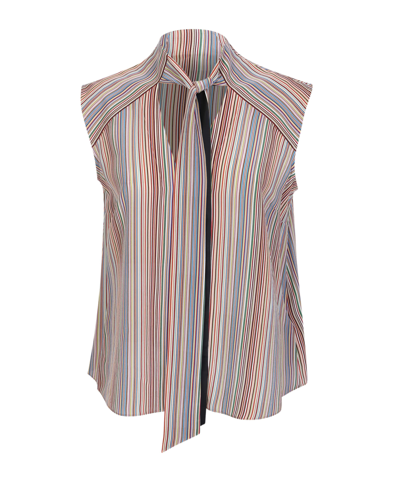 Bow neck. Sleeveless. All-over Artist Stripe motif. Straight hem. Color: multicolor