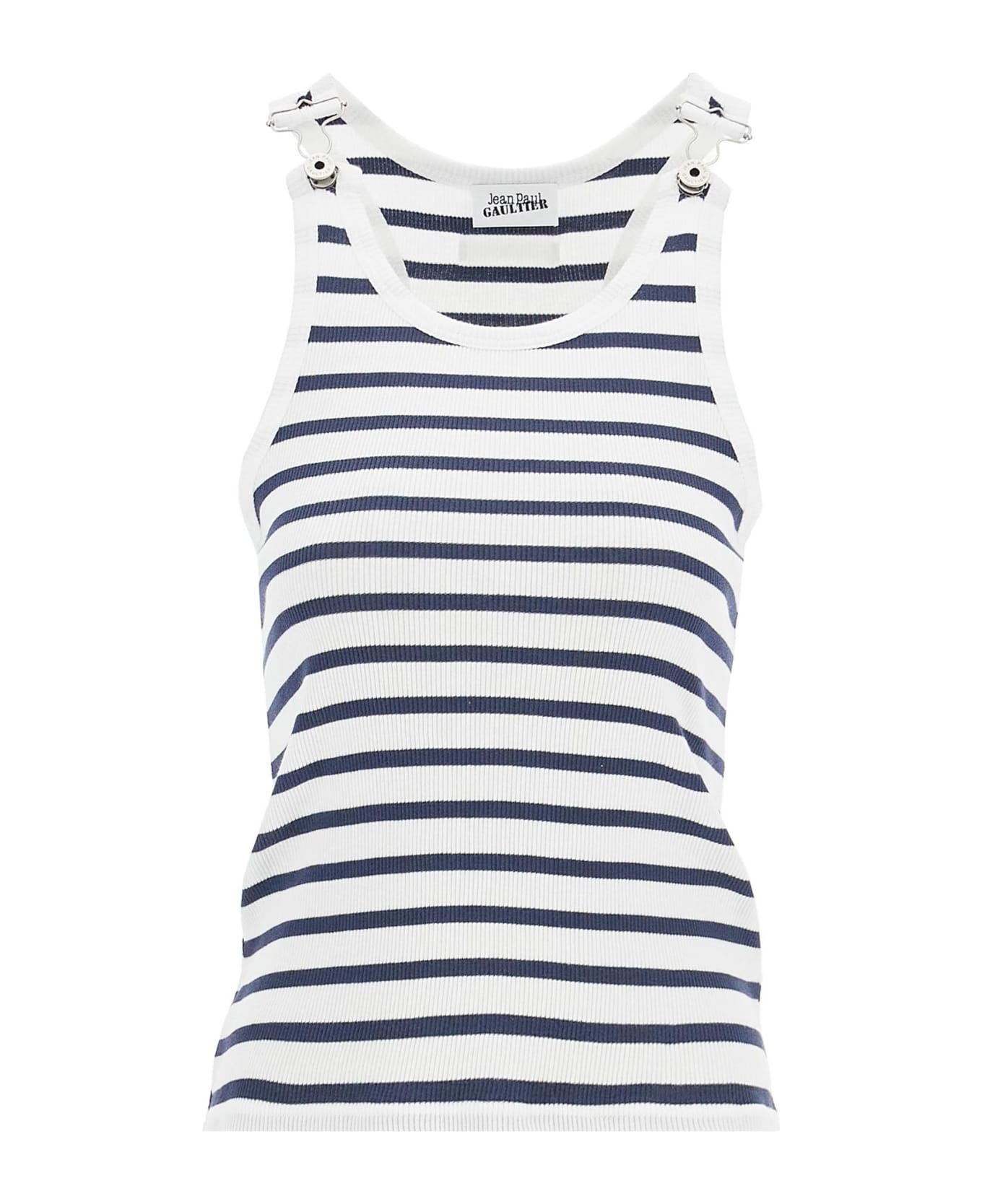This tank top by Jean Paul Gaultier is made of ribbed cotton jersey with overall-style hooks. It has a regular fit and the model is 177 cm tall, wearing size XS.