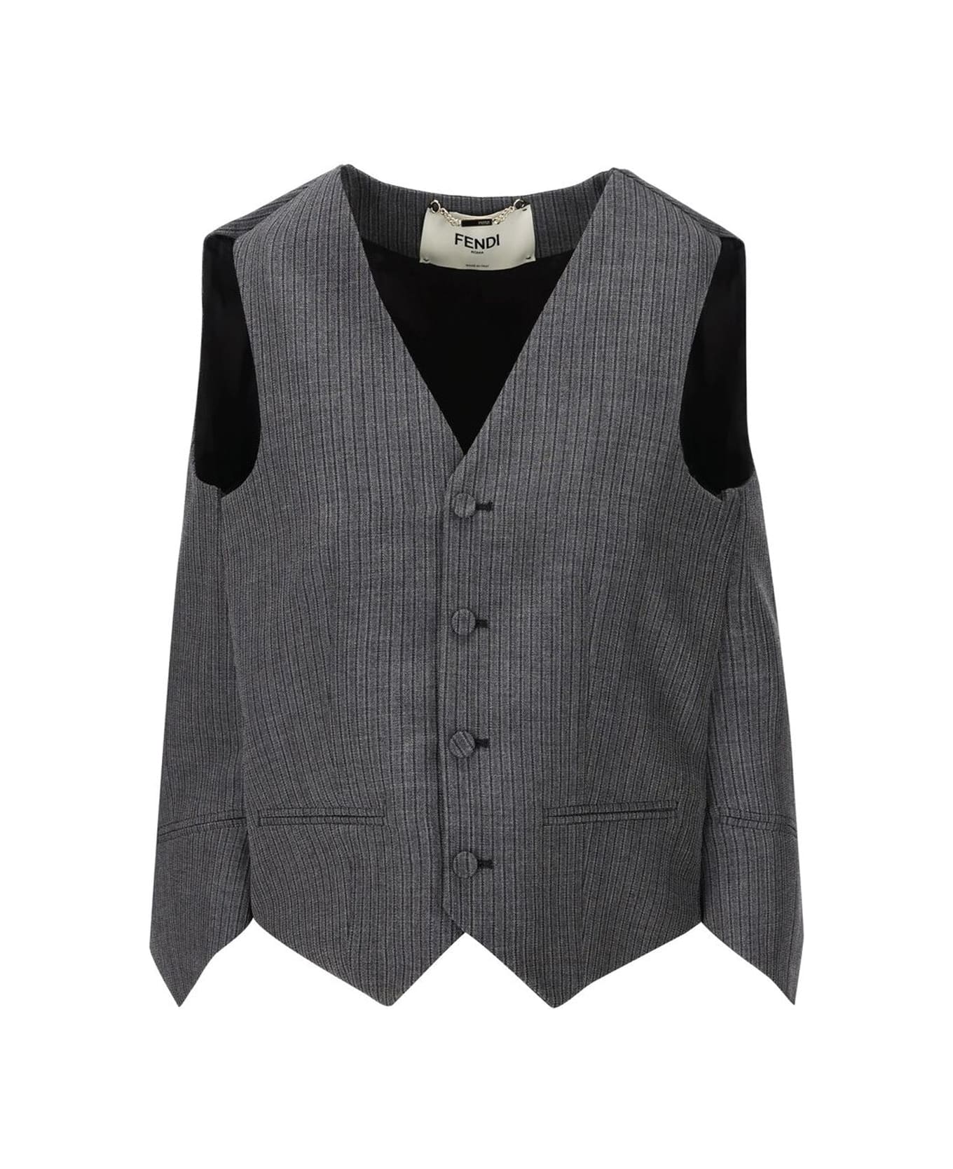 Composition: 100% Virgin wool Front button closure The model is 177 cm tall and wears size IT 38 Runway style Cutout shoulders Back exposed satin lining Back buckled strap Pinstriped Made in Italy