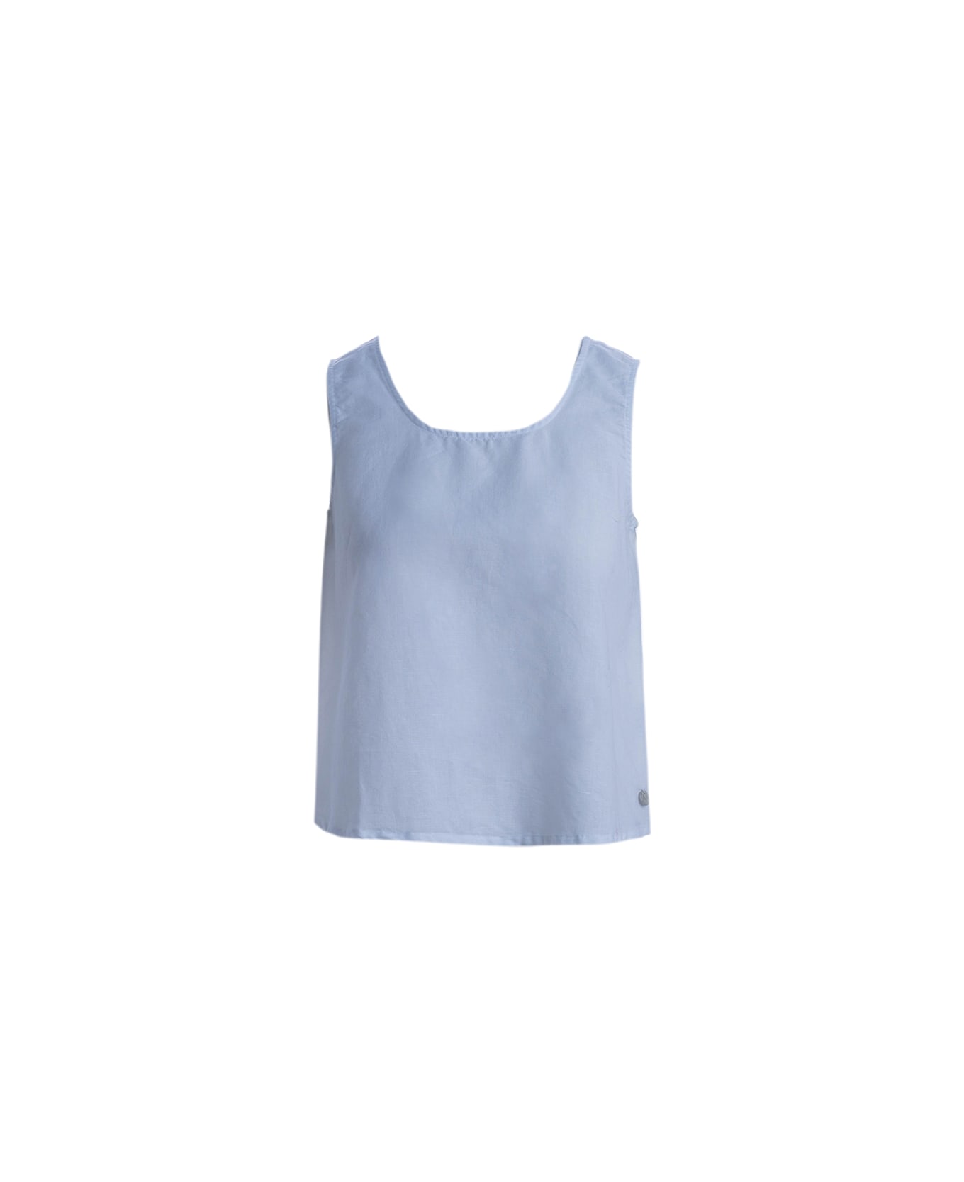 Sun68 woman linen and cotton top, Porcelain Color, silver logo patch on hem, fresh and light, Ideal for summer season.