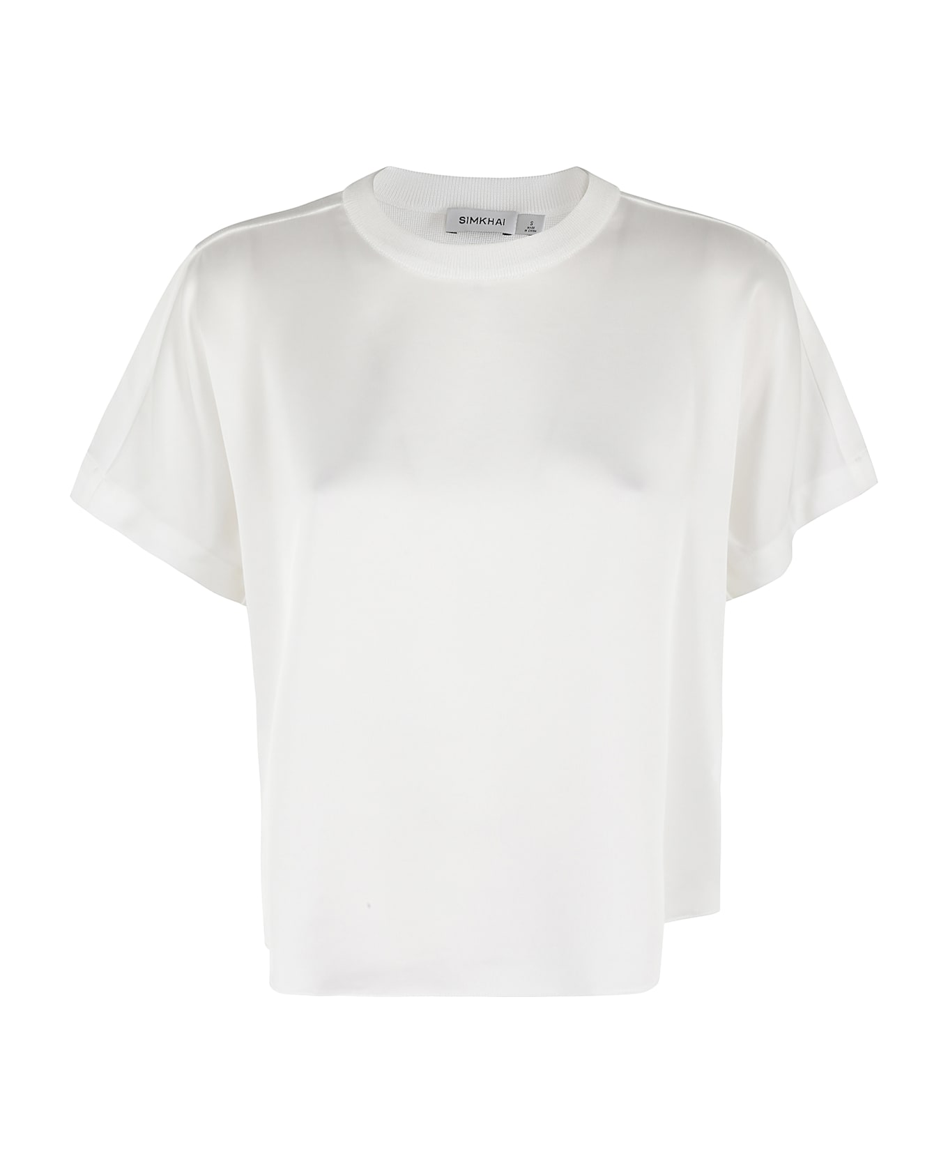 Addy T-shirt - Simkhai - White color - Satin fabric - Rib knit crew neck - Short sleeve - Regular fit