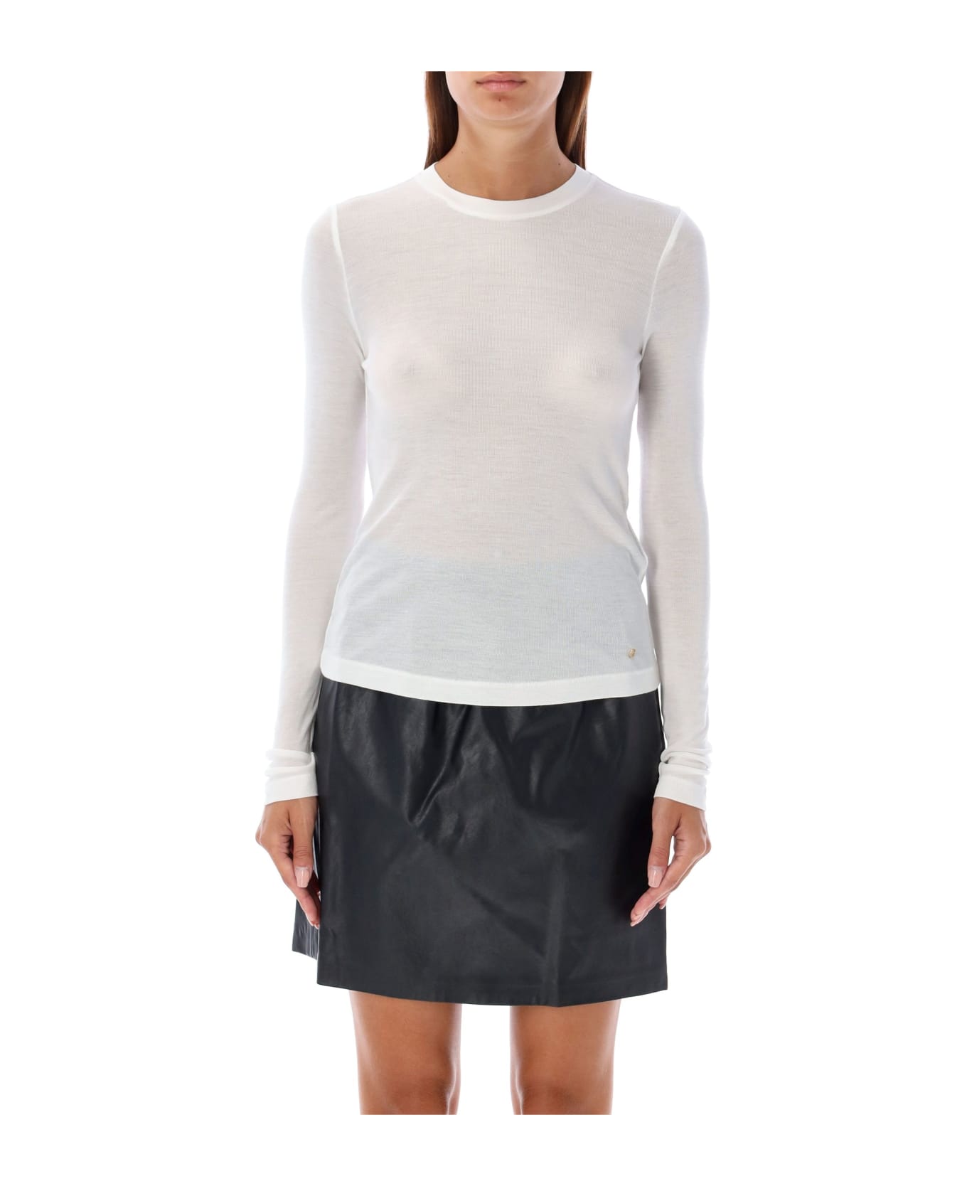 Amani Long Sleeves T-shirt By Anine Bing. Featuring: Modal And Cashmere Blend Slim Fit Crew Neckline Long Sleeves Subtle Brand Logo Detail Model Is 1,72m And Wears Size S.