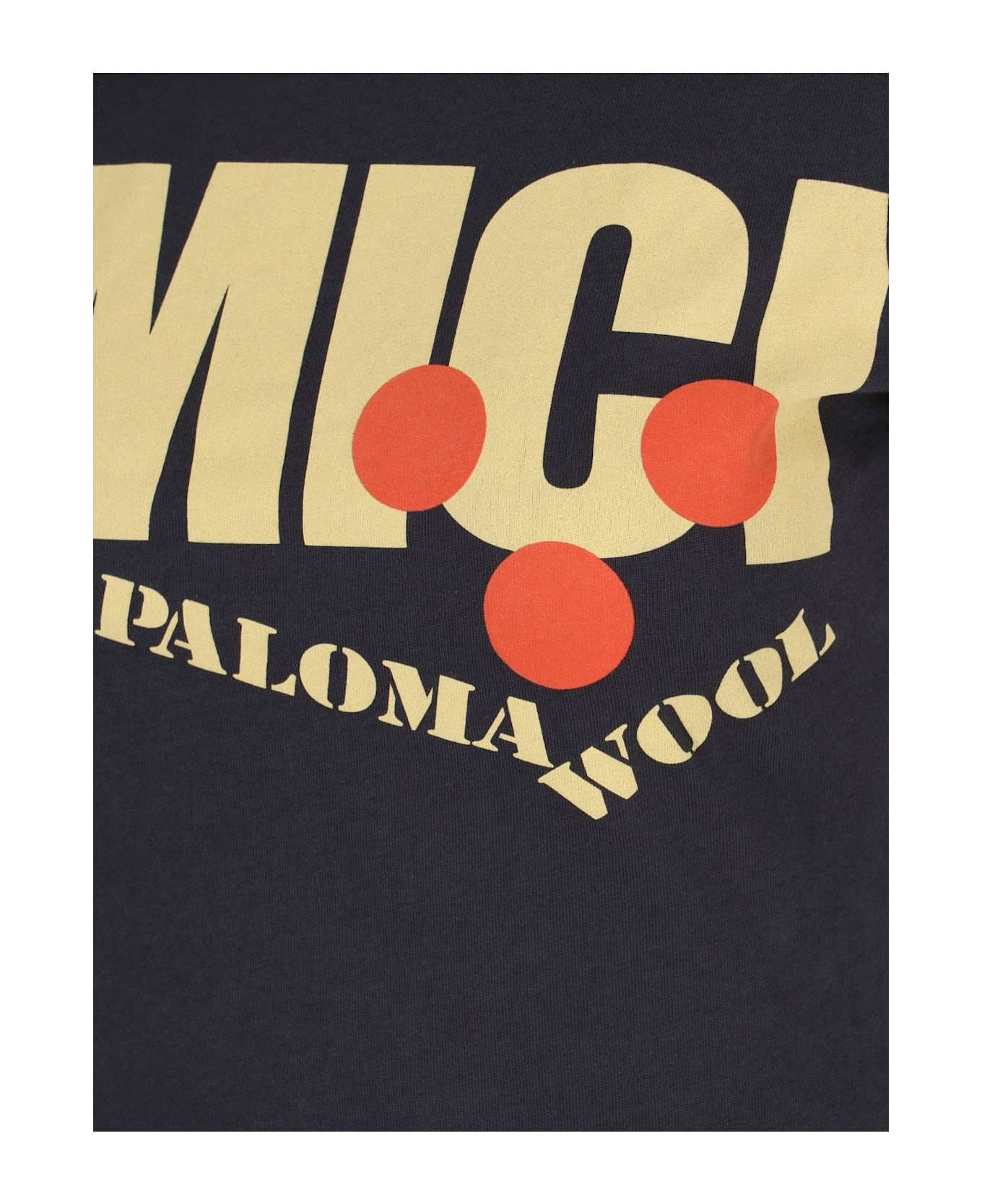 Paloma Wool Amici T-shirt in black organic cotton with crewneck, short sleeves, yellow logo print on the chest, and straight hem.