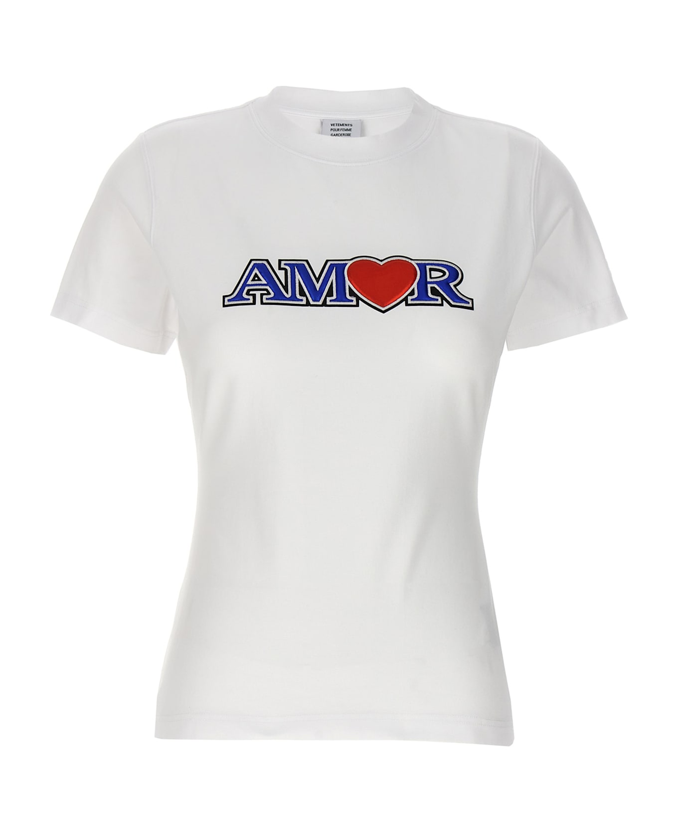 'Amor' stretch cotton crew neck t-shirt with front embroidery, short sleeves.