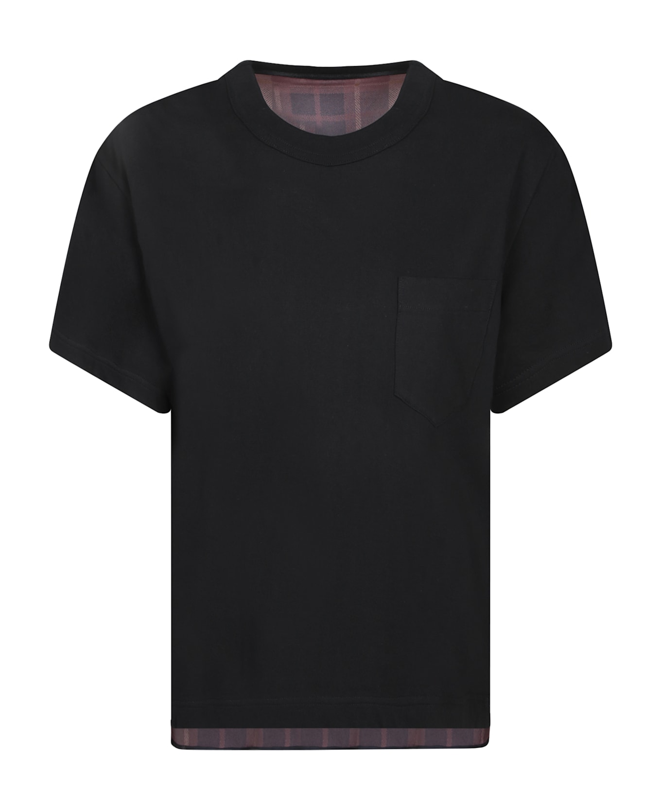 A refined reinterpretation of the basic piece, this SACAI T-shirt stands out with its asymmetric khaki and blue plaid hem and coordinated chest pocket.