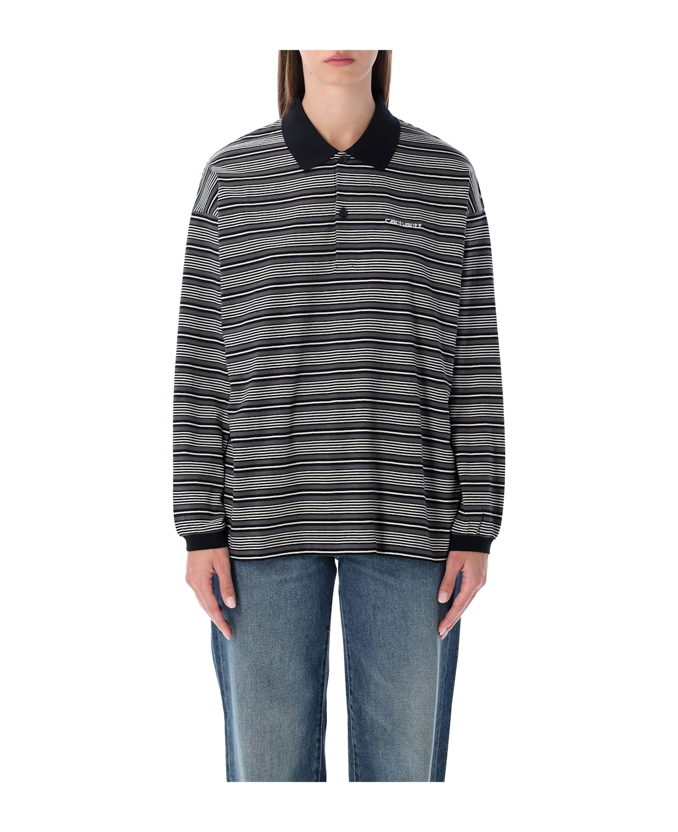The Carhartt Wip L/s Largo Polo Shirt Combines A Sporty Touch With A Relaxed Attitude. Made From Midweight Yarn-dyed Cotton Jersey, It Features An Allover Striped Pattern With A Loose Fit. The Flatknit Collar And Cuffs Enhance The Casual Design, While The Button Placket And Embroidered Script Logo On The Chest Complete The Piece With A Refined Yet Everyday Appeal. Loose Fit