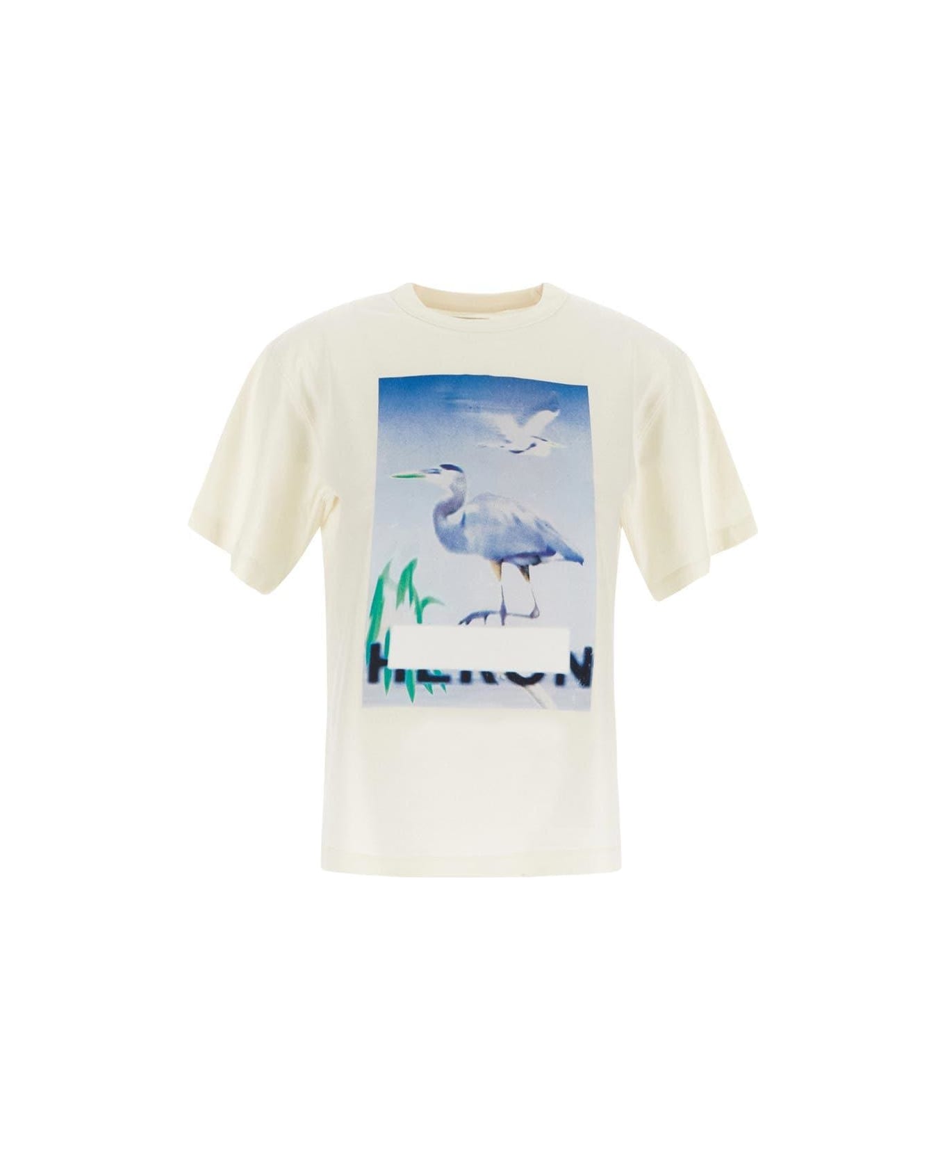 Heron Preston tee in white cotton with front heron print. It features by round neck and short sleeves. Composition: 100% Cotton