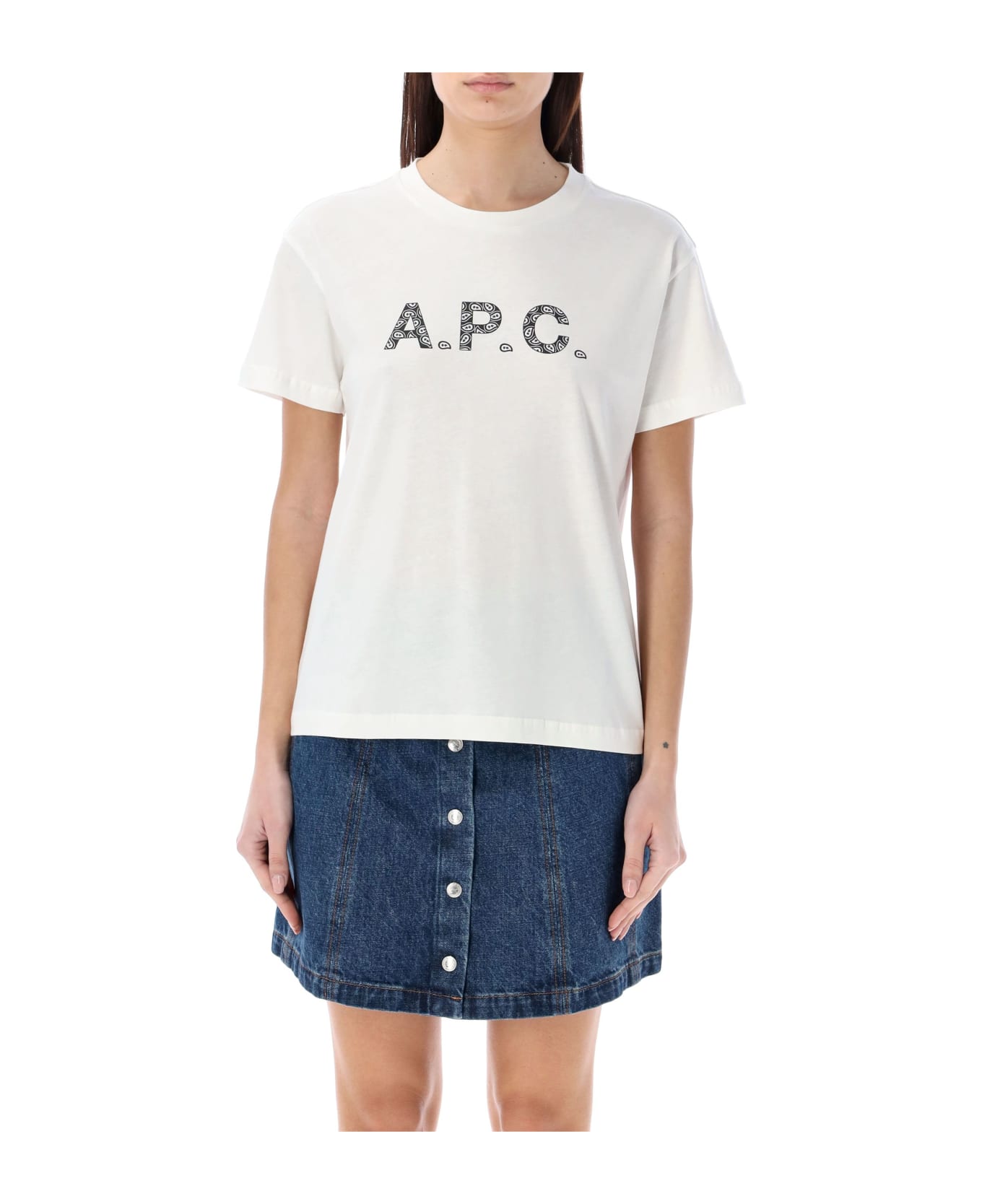 Chelsea T-shirt By A. p. c. Featuring: Classic Neckline Short Sleeves Front Logo With Bandana Trim Straight Hem Solid Back Model Is 1,72 M And Wears Size S