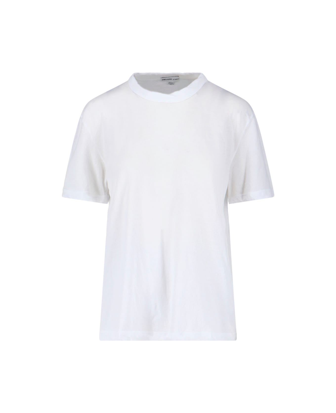 Classic James Perse white cotton crew neck t-shirt with short sleeves, straight hem.