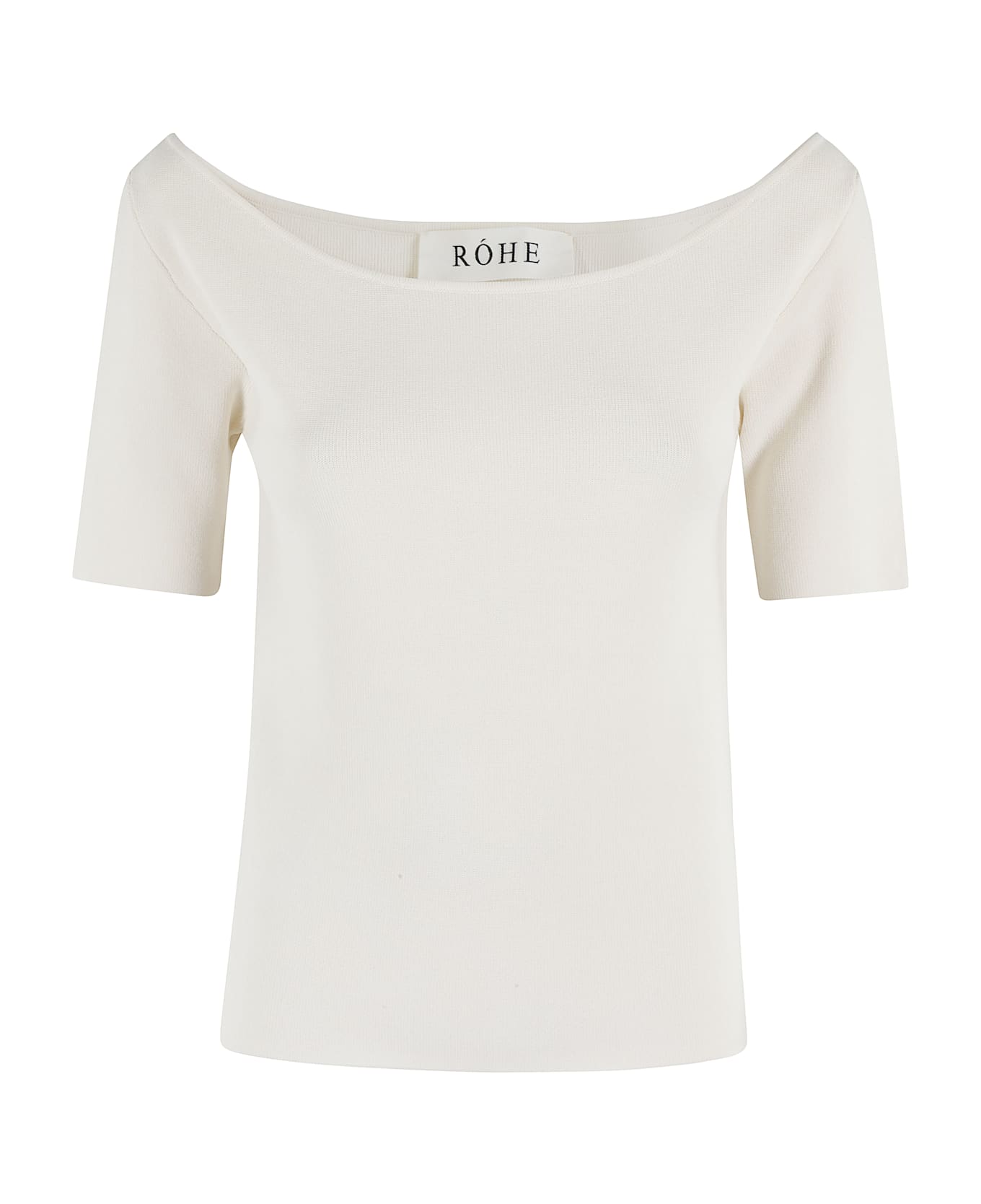 T-Shirt - Ròhe - Ivory color - Stretch knit fabric - Boat neckline - Short sleeve - Tight fit