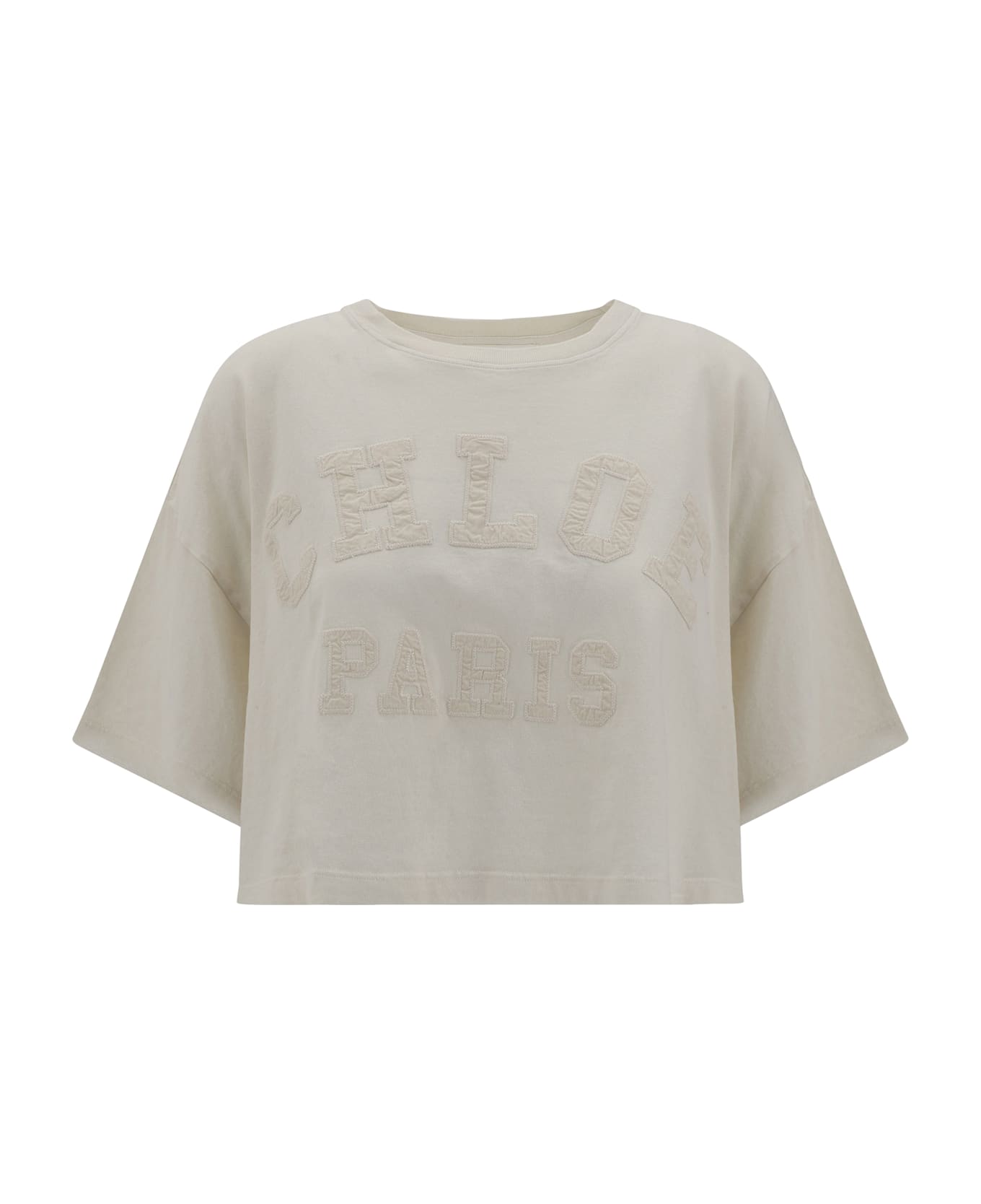 Chloé cotton cropped t-shirt: the chloé cotton cropped t-shirt features a ribbed crew neck and the brand's iconic logo applied in tone-on-tone on the front. a simple yet refined piece, perfect for a casual yet distinctive look that embodies the minimalist elegance typical of the brand. Composition: 100% % Cotton