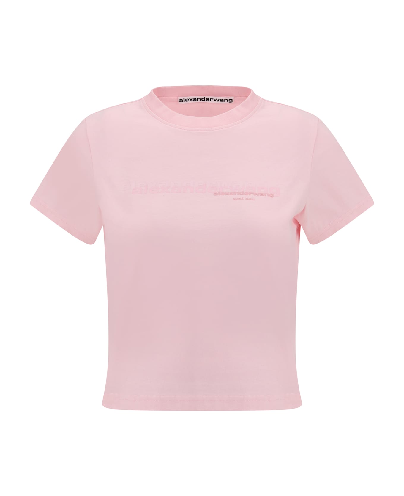 Alexander wang's cotton t-shirt is a modern essential. the cropped model features a ribbed crew neck and stands out for the iconic logo printed on the front, which gives a recognizable and urban touch to the minimal style of the brand.
