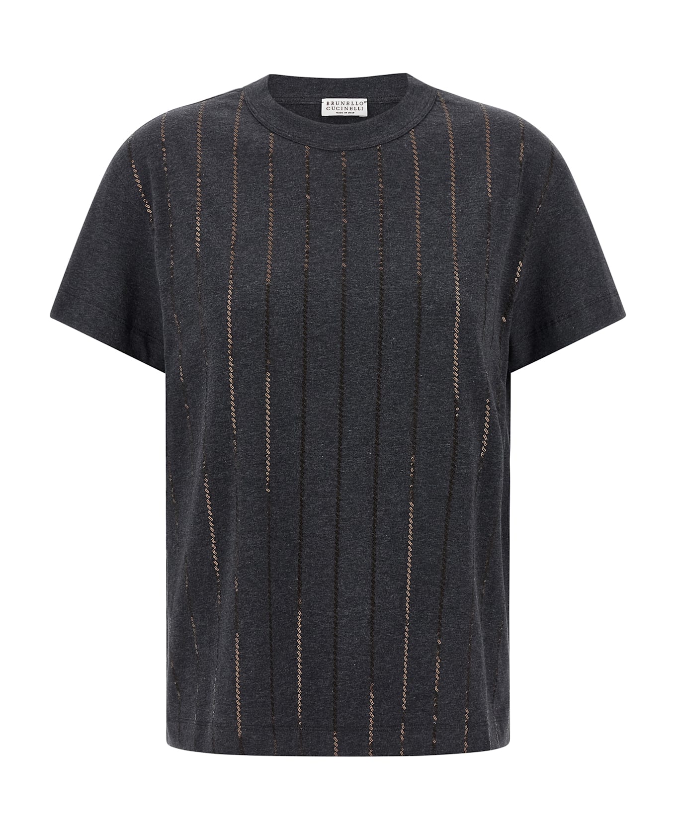 Cotton T-shirt with front sequin 'Dazzling Chalk Stripe Embroidery', crew neck, short sleeves. Composition: 100% cotton