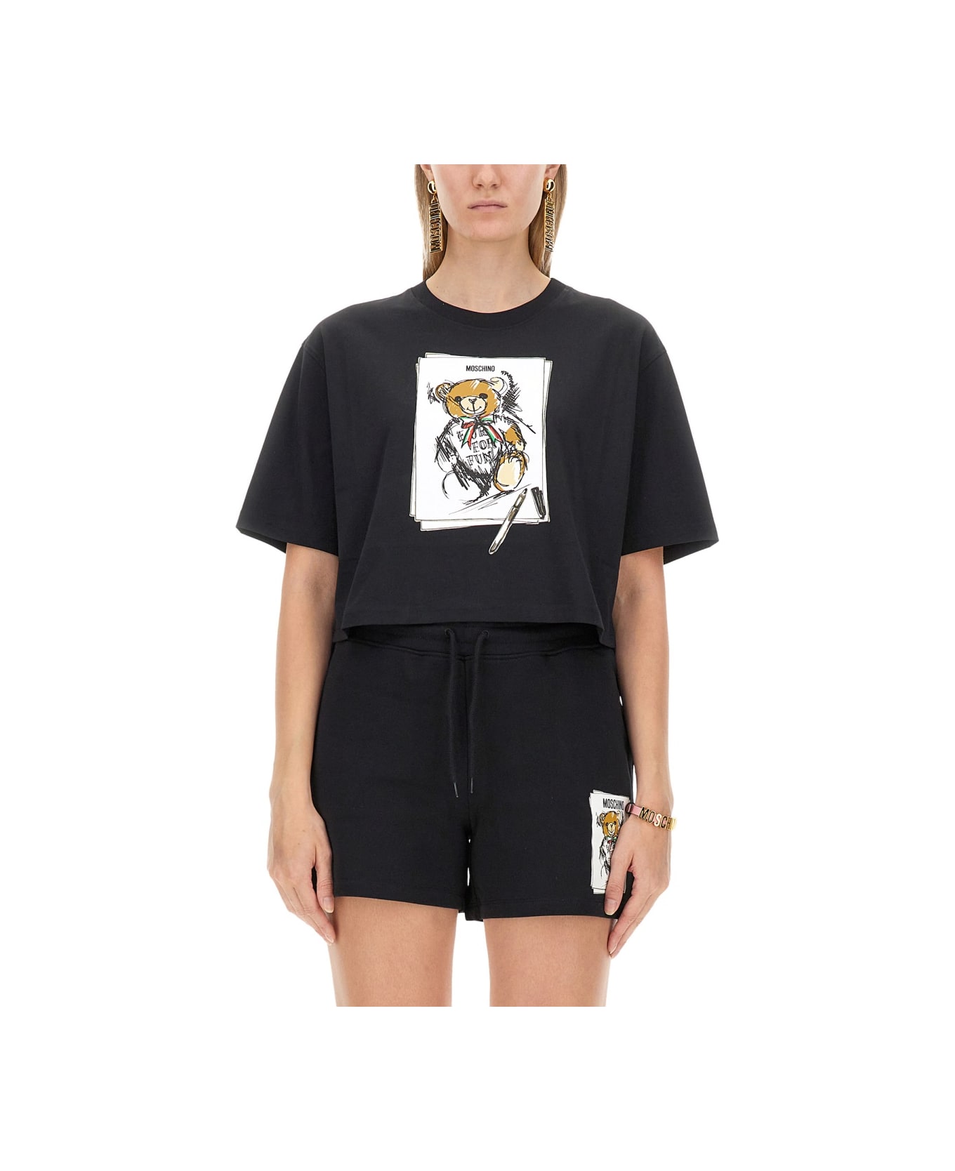 Moschino an Italian luxury fashion house founded by Franco Moschino in the 1980s. The line is known for its bold, experimental, playful designs, and the women's collection features apparel, outerwear, shoes, bags, and accessories.