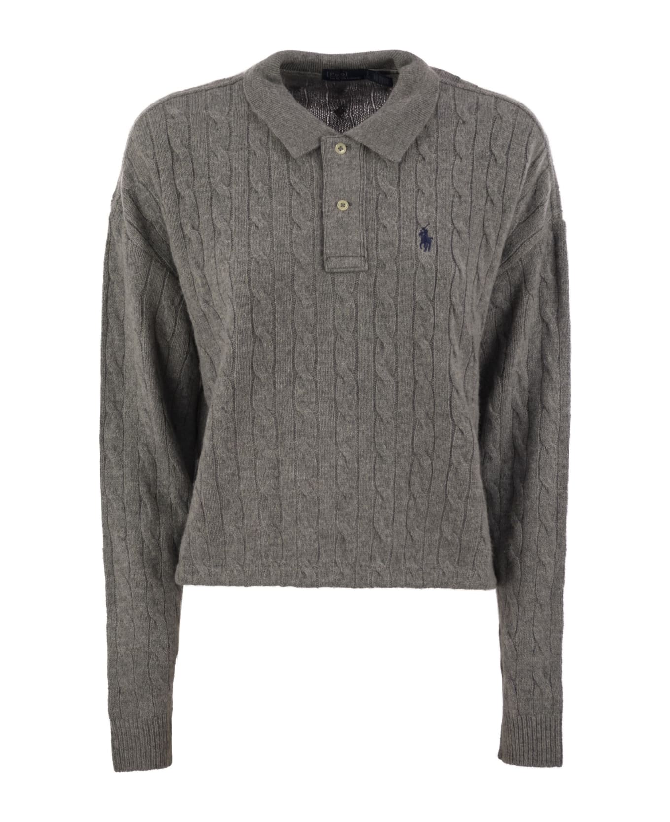 This cable-knit polo shirt made of wool and cashmere features a modern short silhouette and is embellished with our exclusive embroidered pony on the chest. - Straight cut, hip length - Striped polo collar with two-button closure - Long sleeves with ribbed cuffs - Exclusive embroidered pony on the left side of the chest DESIGNER ID: 211910158 006