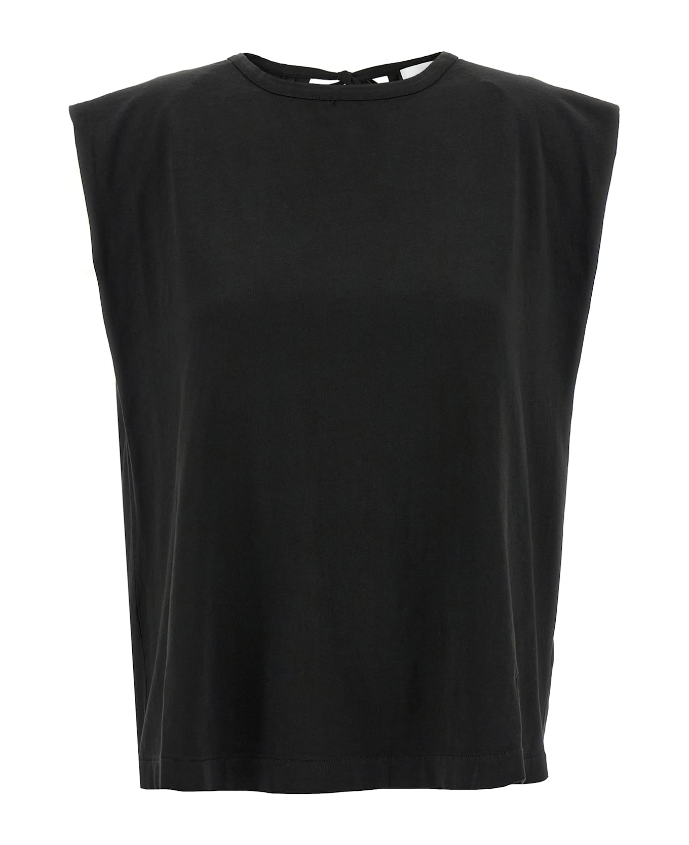 Sleeveless crewneck cotton T-shirt with plunging back neckline with drawstring.