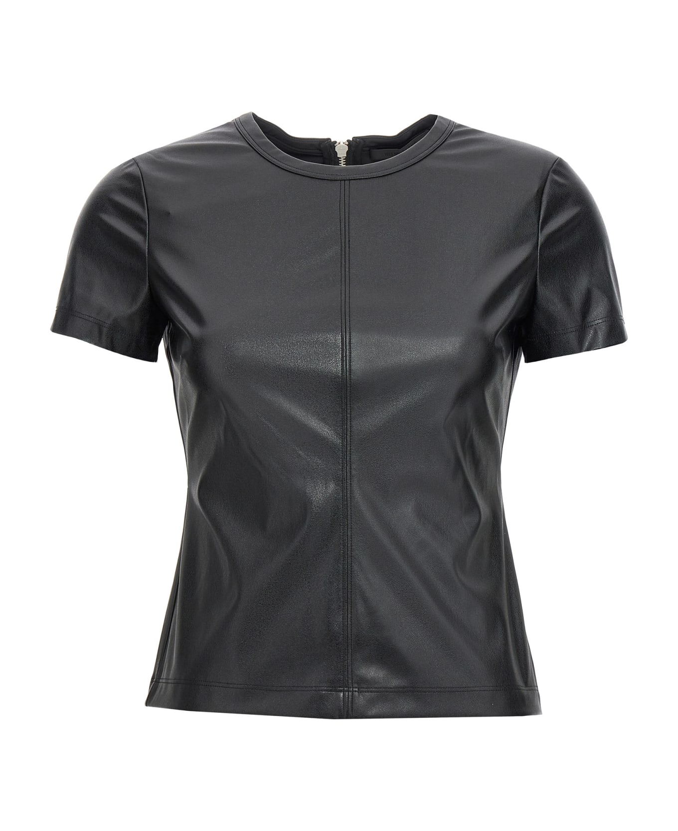 T-shirt in a stretch leather effect fabric, with crewneck, short sleeves and a back zip closure.