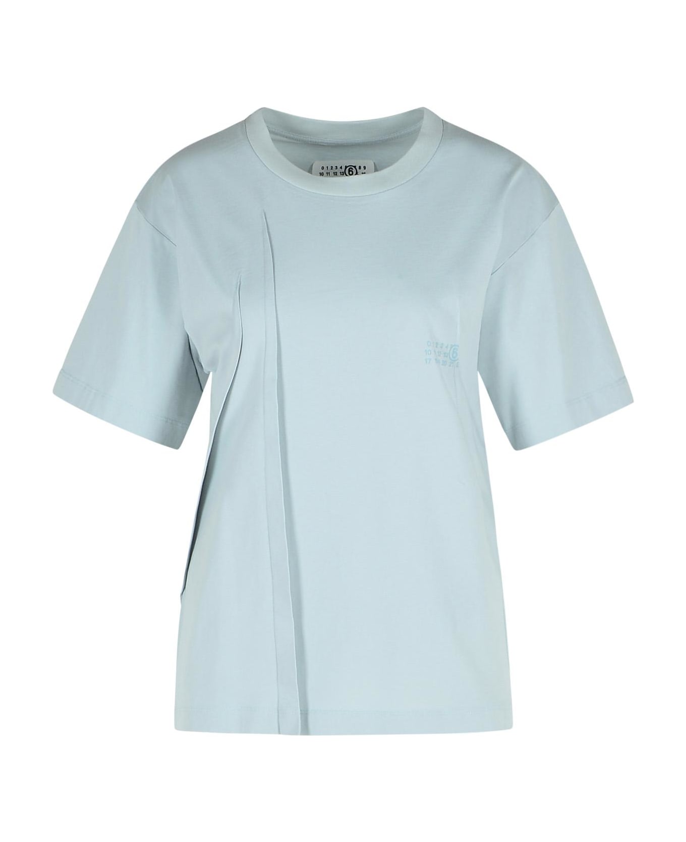 Ribbed crew neck, decorative pin tucks, tonal logo print on the chest Composition: 100% cotton