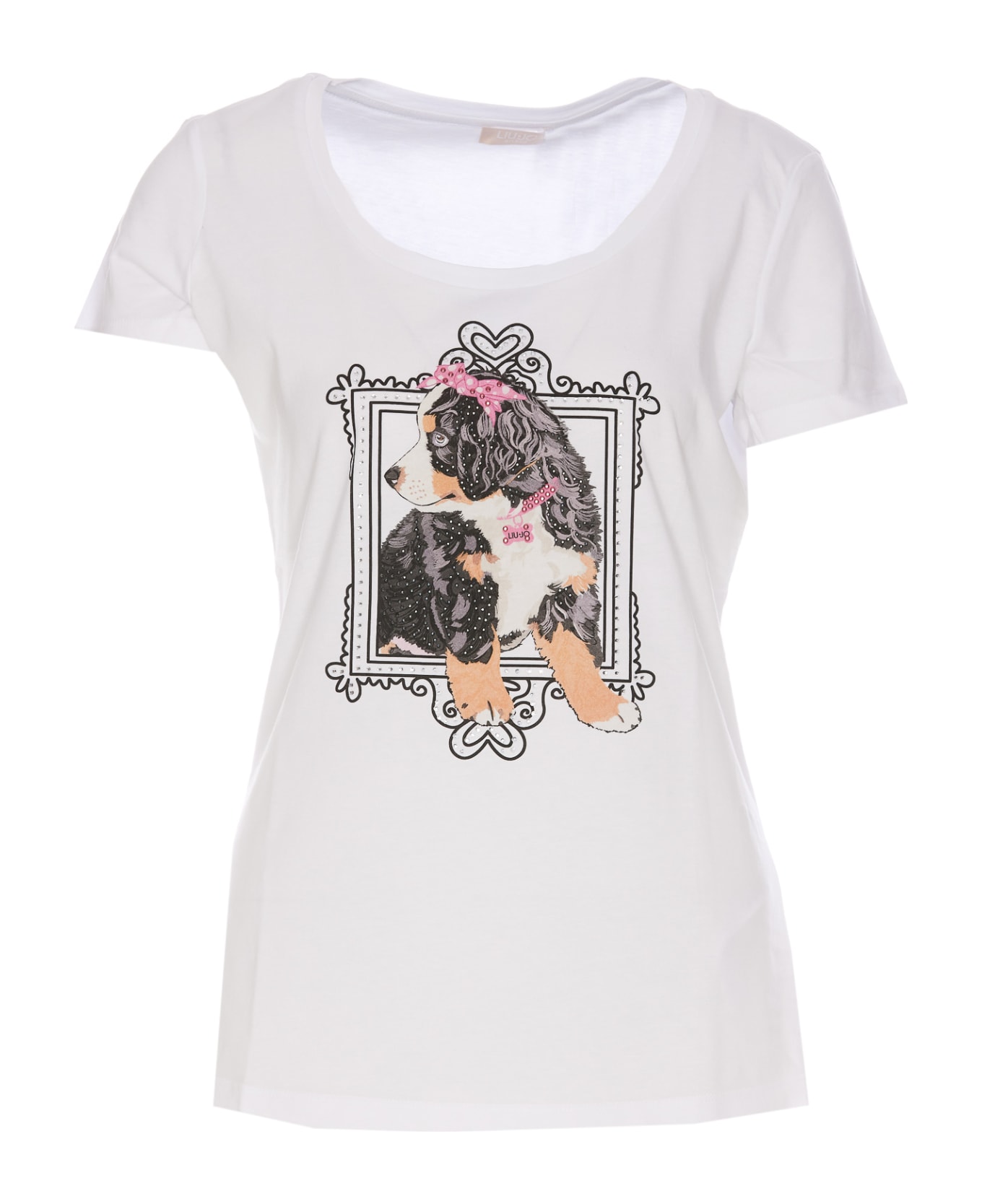 Liu Jo white t-shirt, crewneck, frontal logo, strass details