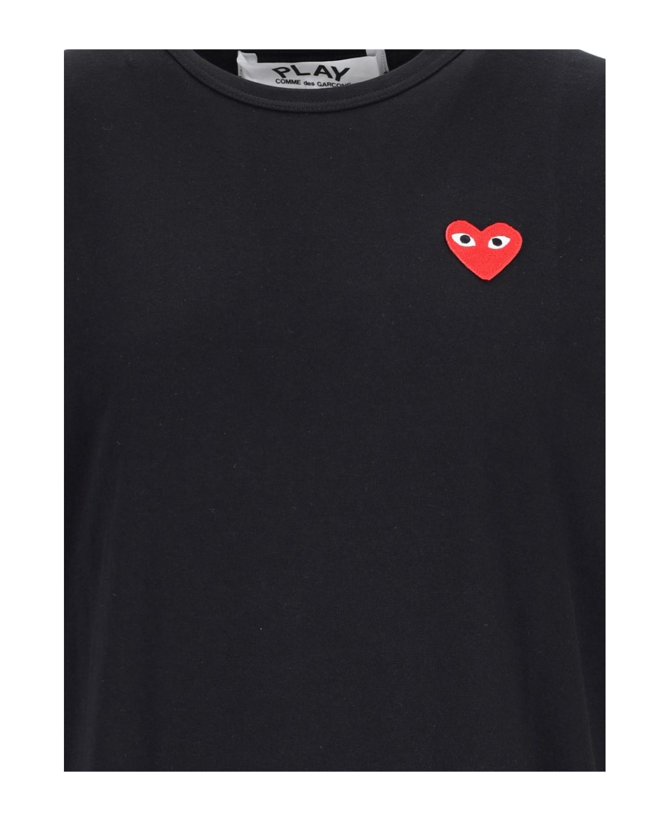 Comme des Garçons Play logo T-shirt in black cotton with crewneck, short sleeves, red logo patch on the chest, and straight hem.