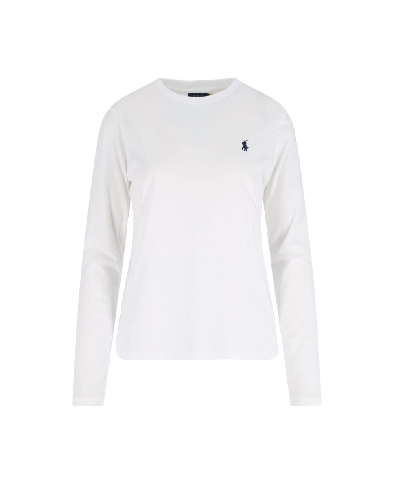 Polo Ralph Lauren logo t-shirt in white cotton with crew neck, short sleeves, blue logo embroidery on the chest, straight hem.