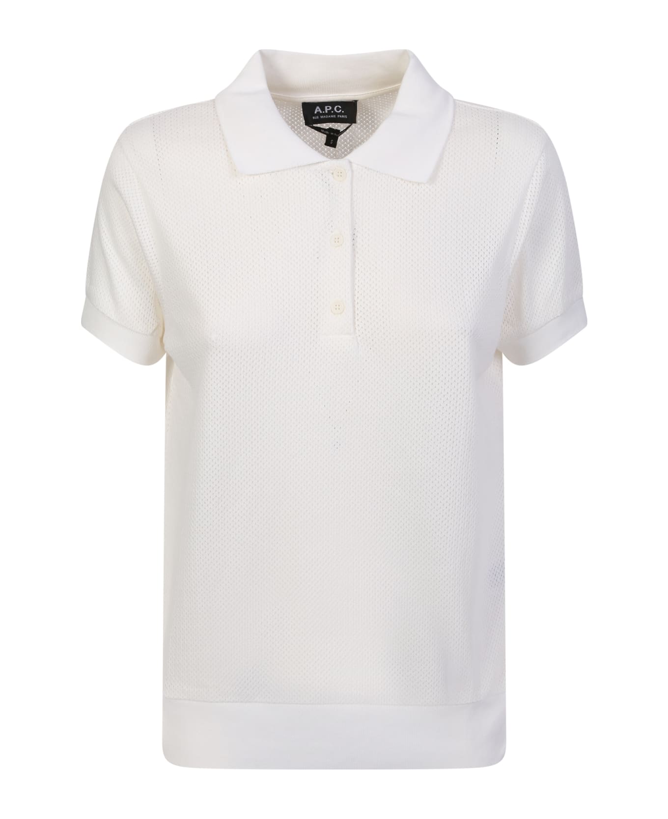 Polo collar. Short sleeves. Front button fastening. Open knit. Straight hem. Color: cream