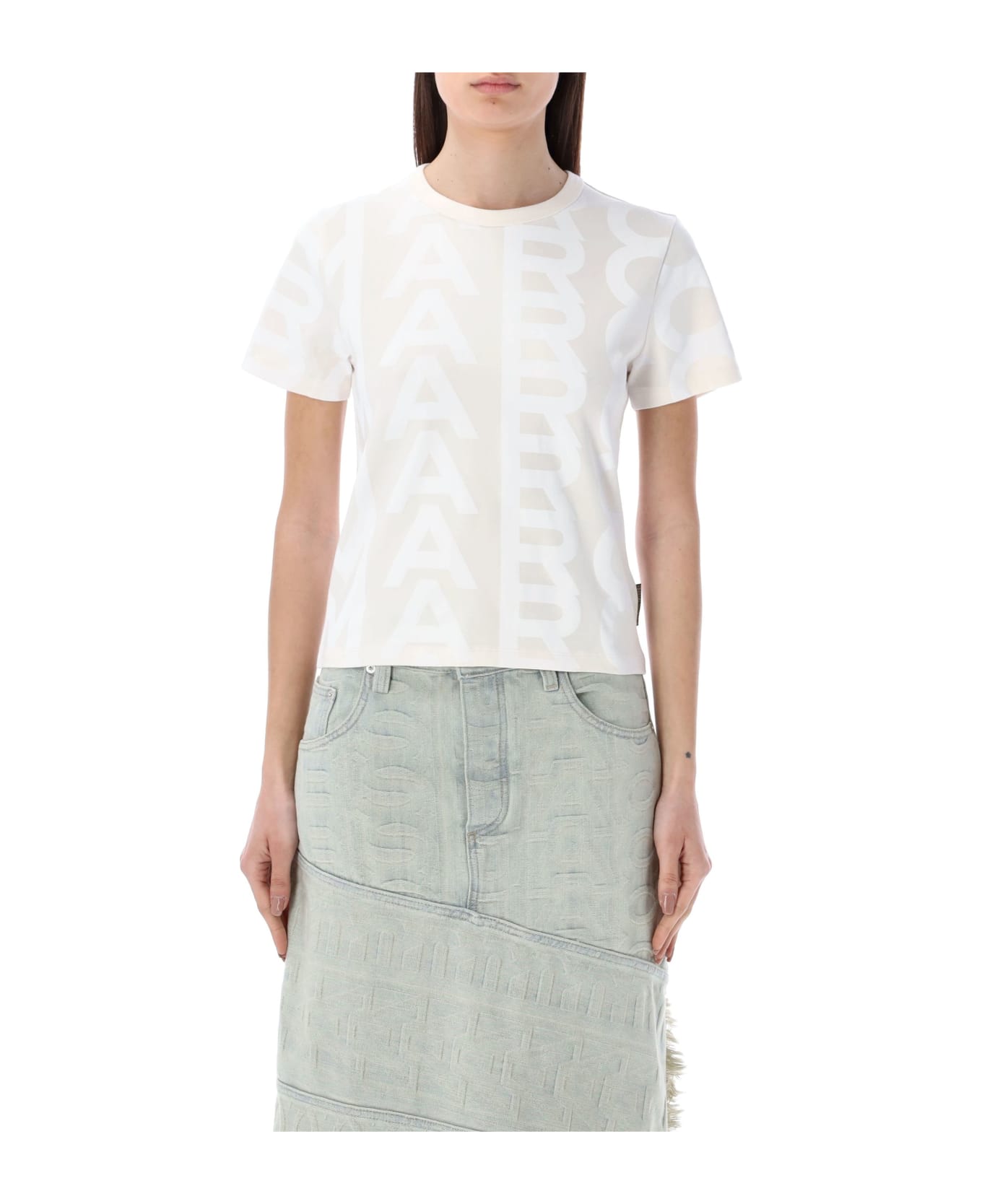 Stretch Cotton Monogram Slim T-shirt By Marc Jacobs. Featuring: Crewneck Short Sleeves Monogram Motif Straight Hem Model Is 1,72 M Tall And She Is Wearing Size M
