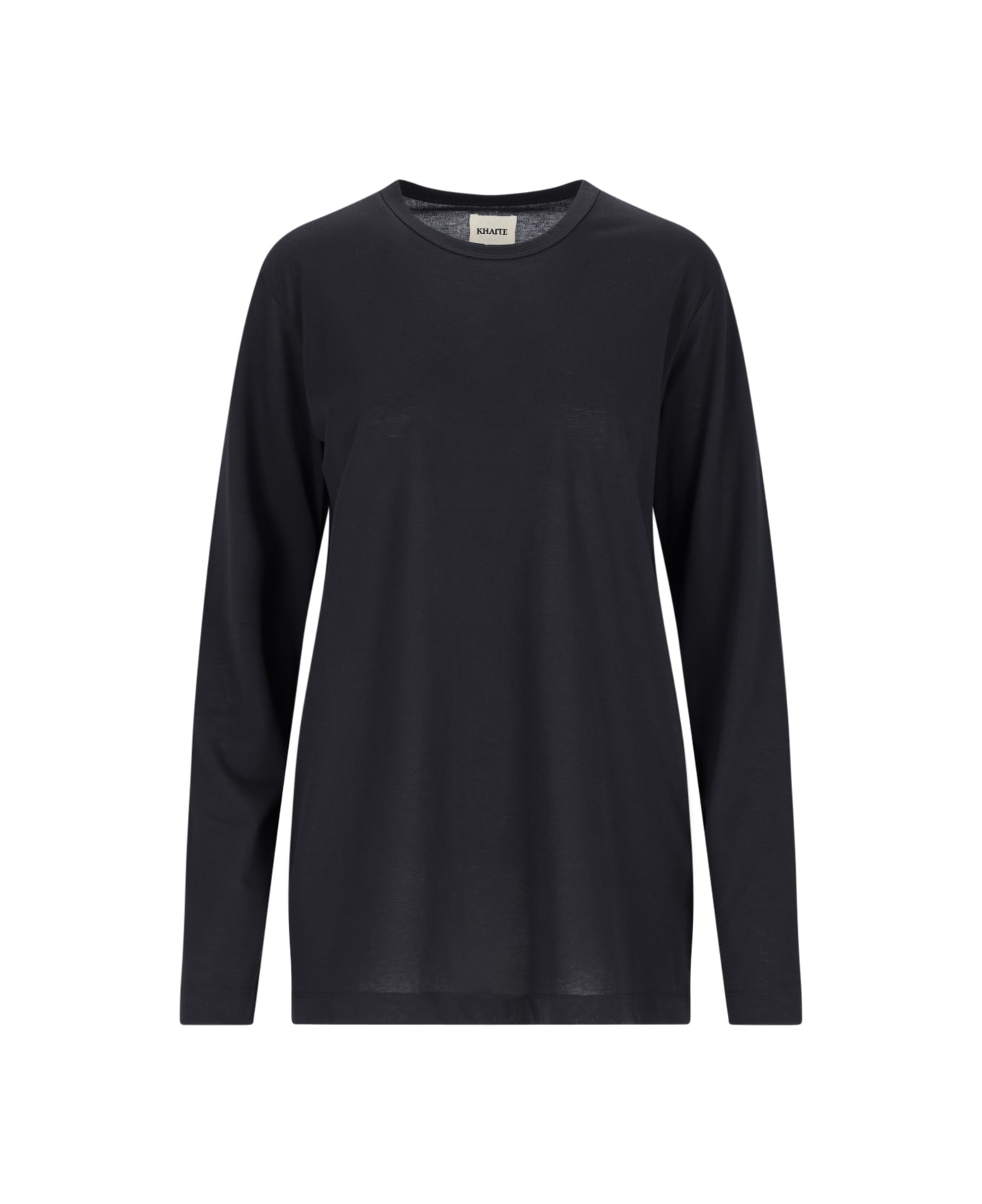 Khaite 'Morton' jersey t-shirt in black cotton blend with crew neck, ribbed trims, straight hem.