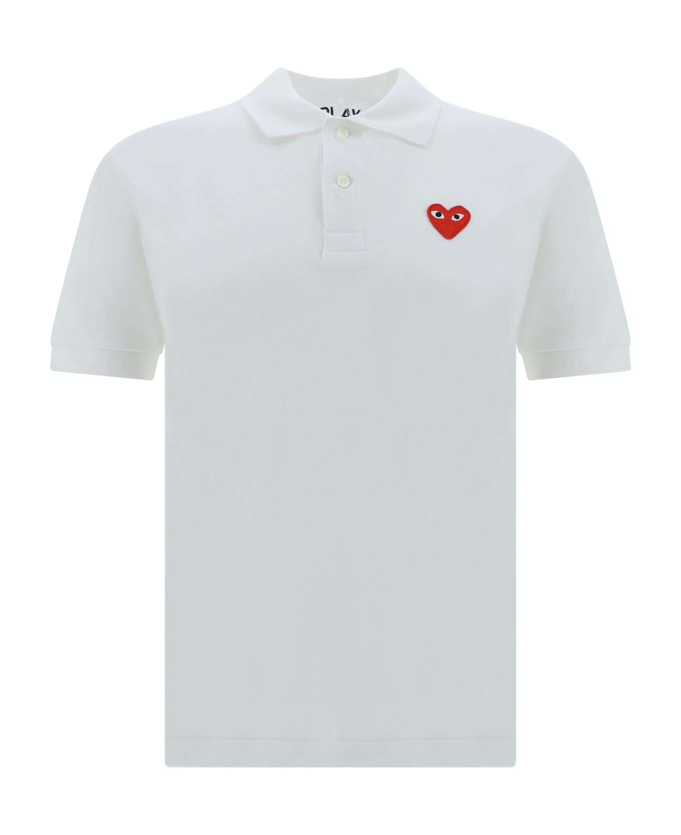 Cotton polo shirt by comme des garçons play, classic collar, toneontone front buttons, contrasting iconic brand logo patch on front, slim fit.