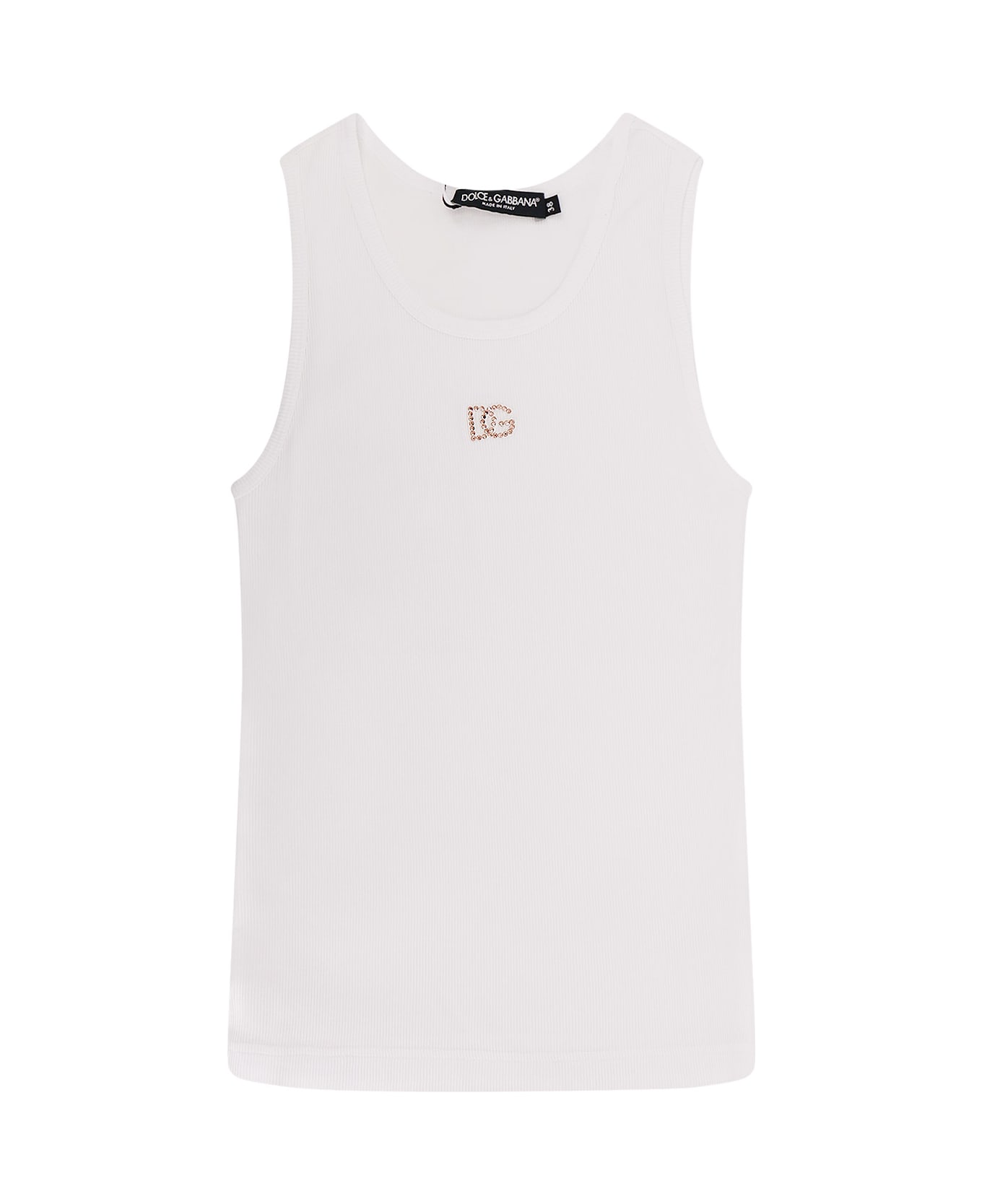 Crew-neck Sleeveless DG crystal logo Made in Italy 100% Cotton SKU:F8V40ZGDDL8W0800