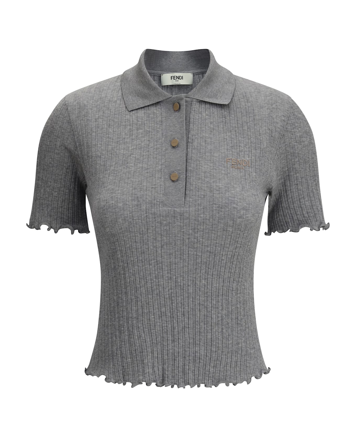 Fendi's polo t-shirt combines classic lines and distinctive details in a sleek, contemporary ribbed design. featuring a classic ribbed collar, three-button front closure and lettuce hems, it is complemented by the brand's signature stitched on the front for an iconic and refined touch.