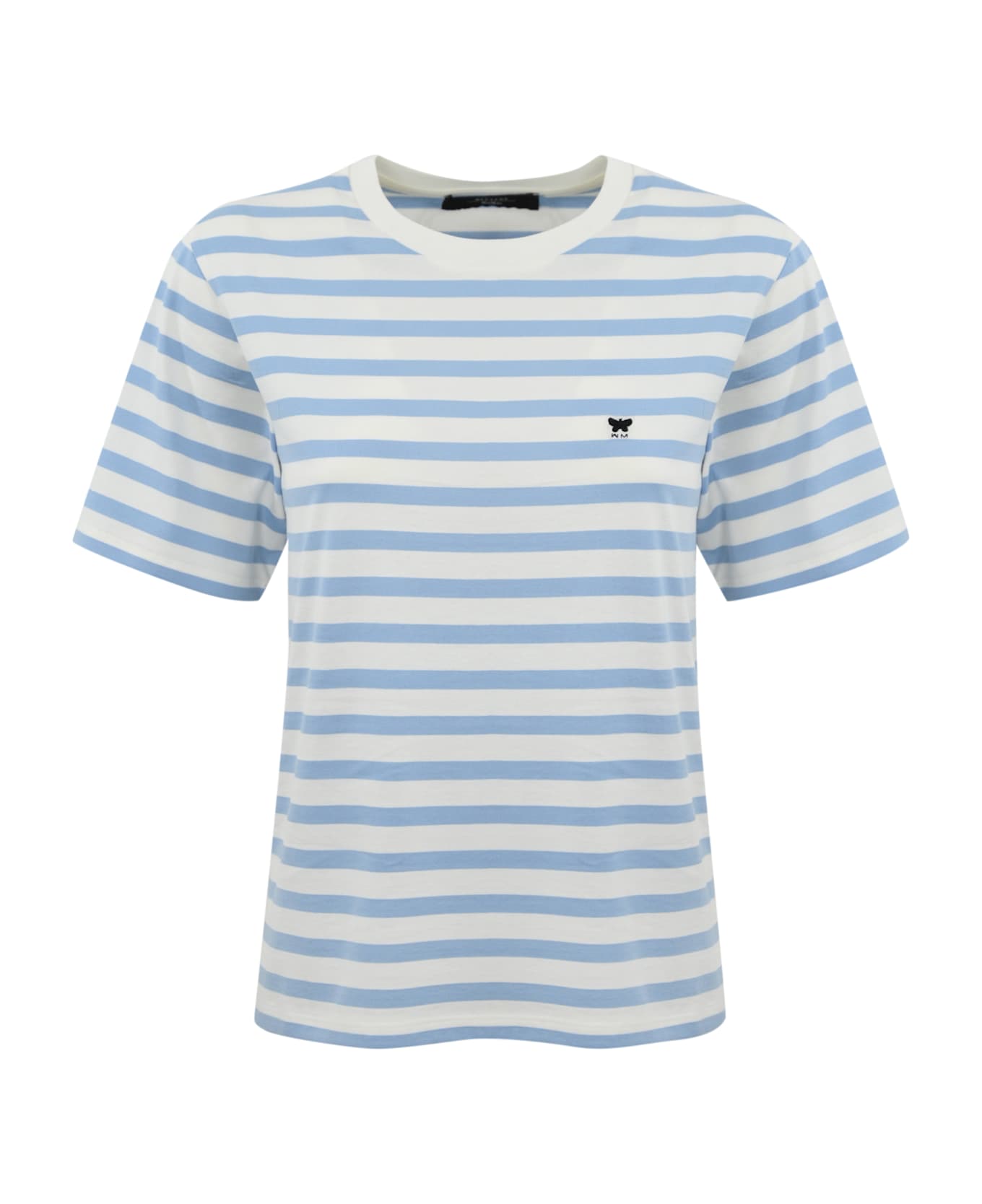 women's cotton t-shirt: cotton jersey short sleeves crew neck logo embroidery on heart side straight hem straight line striped pattern regular fit composition: 100% cotton