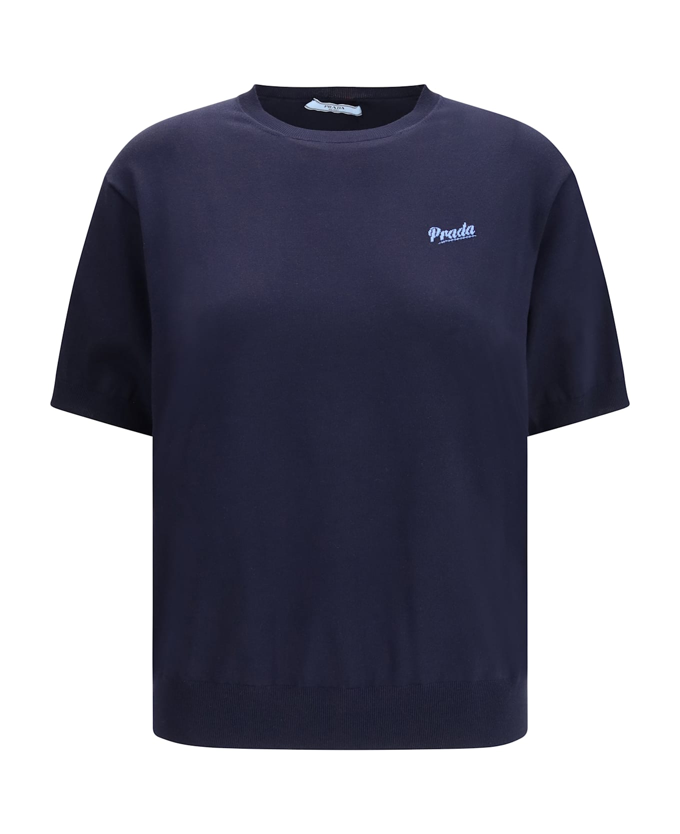 The silk crewneck sweater by prada embodies understated, refined elegance. crafted from pure silk, it features a crew neckline, short sleeves, and a straight hem for a clean, versatile silhouette. ribbed trims at the neckline, cuffs and hem define the design, while the contrast embroidered prada logo on the chest adds a distinctive touch. a regular fit ensures comfort and ease.