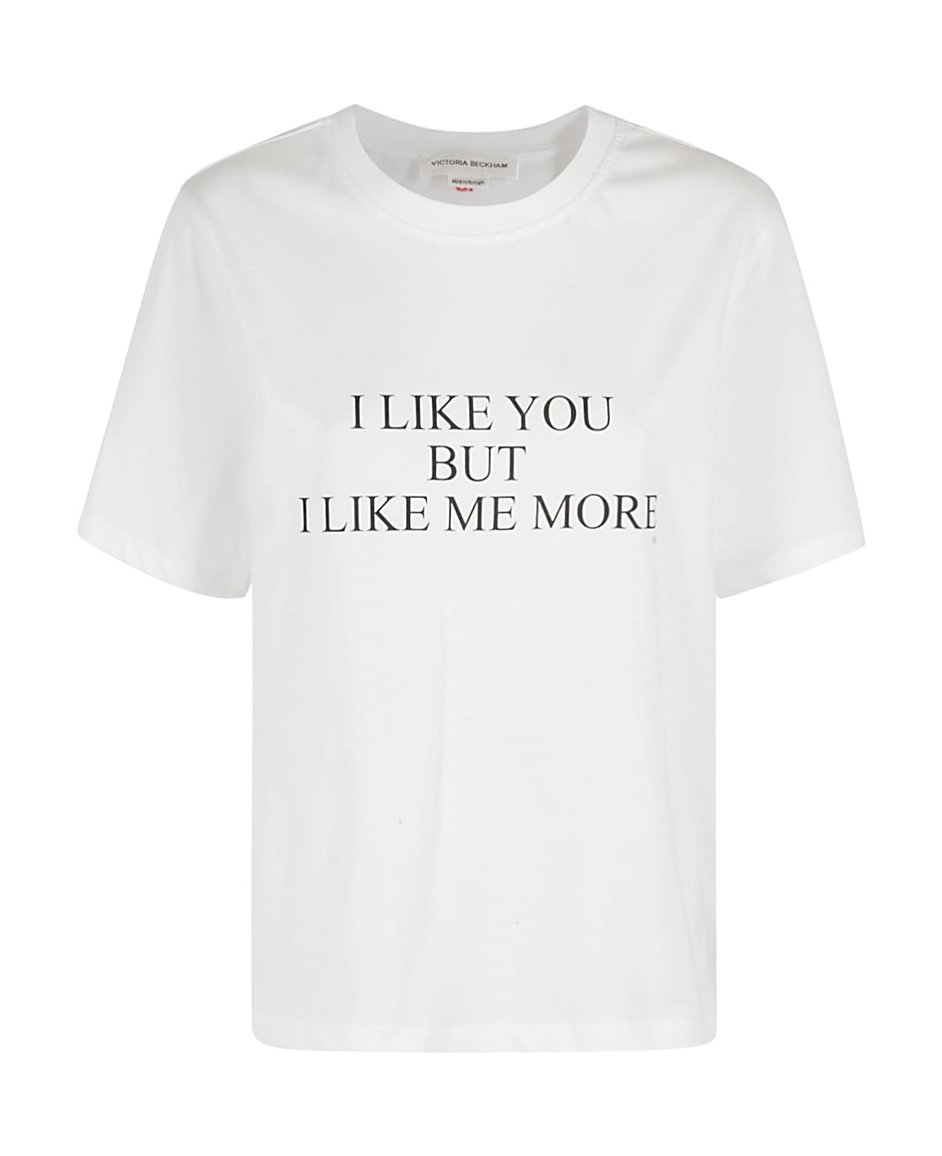 Slogan T-shirt - Victoria Beckham - White color - Ribbed crew neck - Short sleeve with dropped shoulder - Contrasting front slogan lettering - Loose fit
