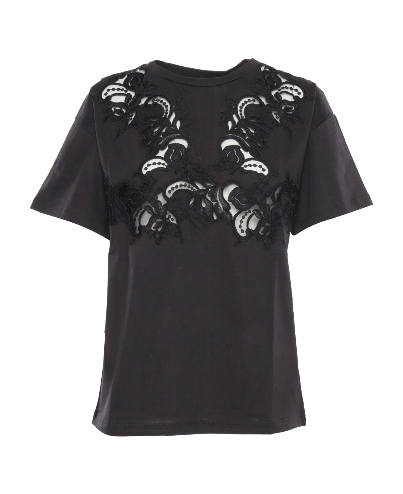 Cotton T-shirt, front lace detail, oversized short sleeves